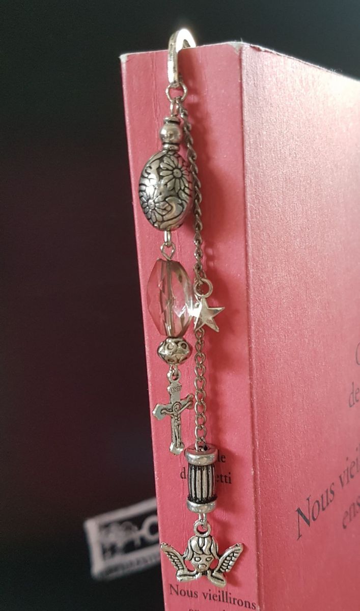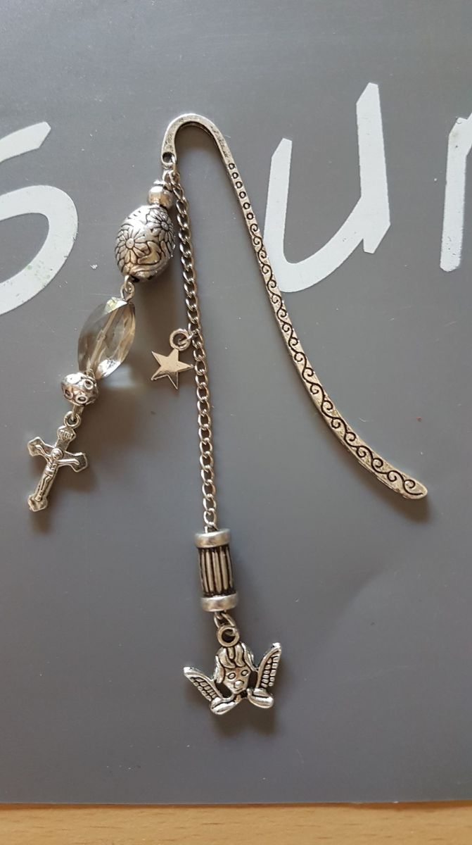 Joli marque-page, signet métallique fait par moi-même. Modèle "Ange et Croix".