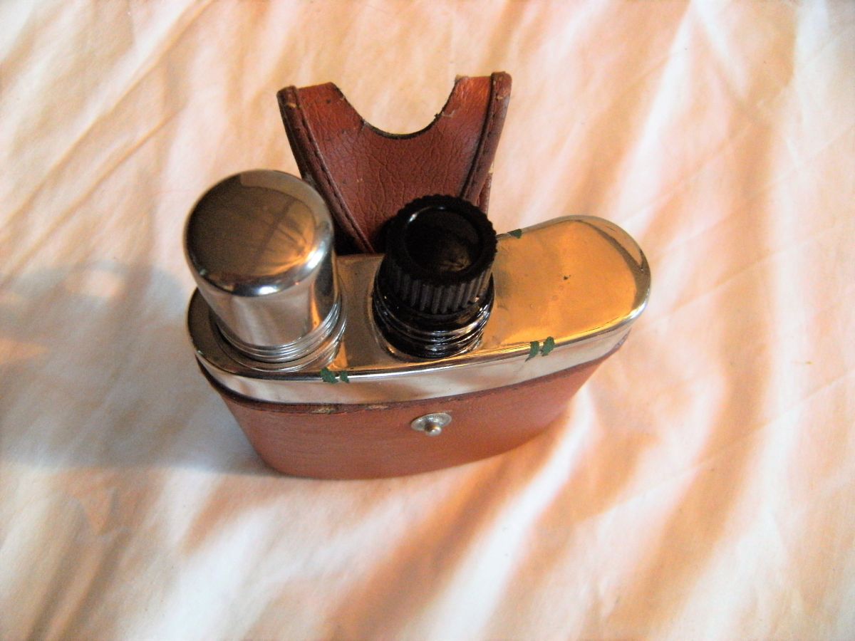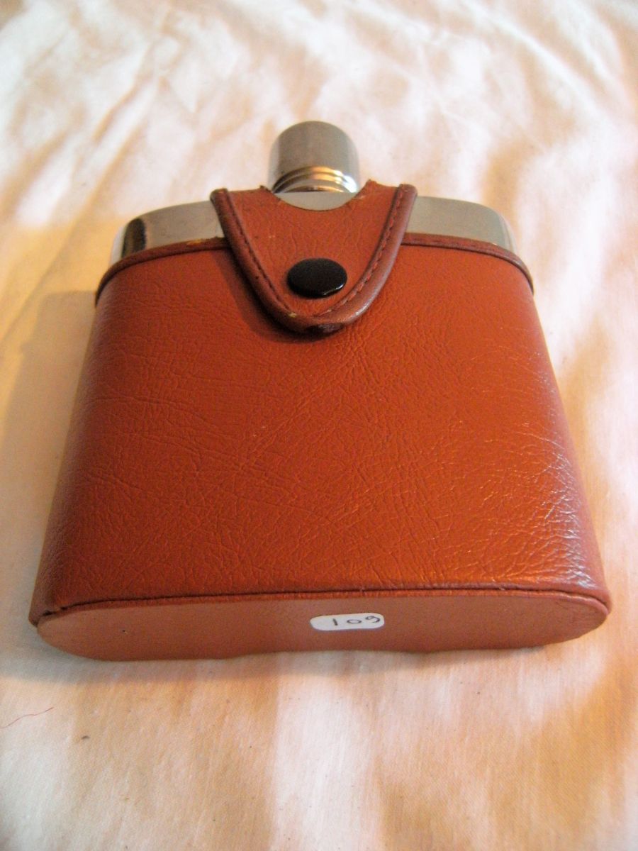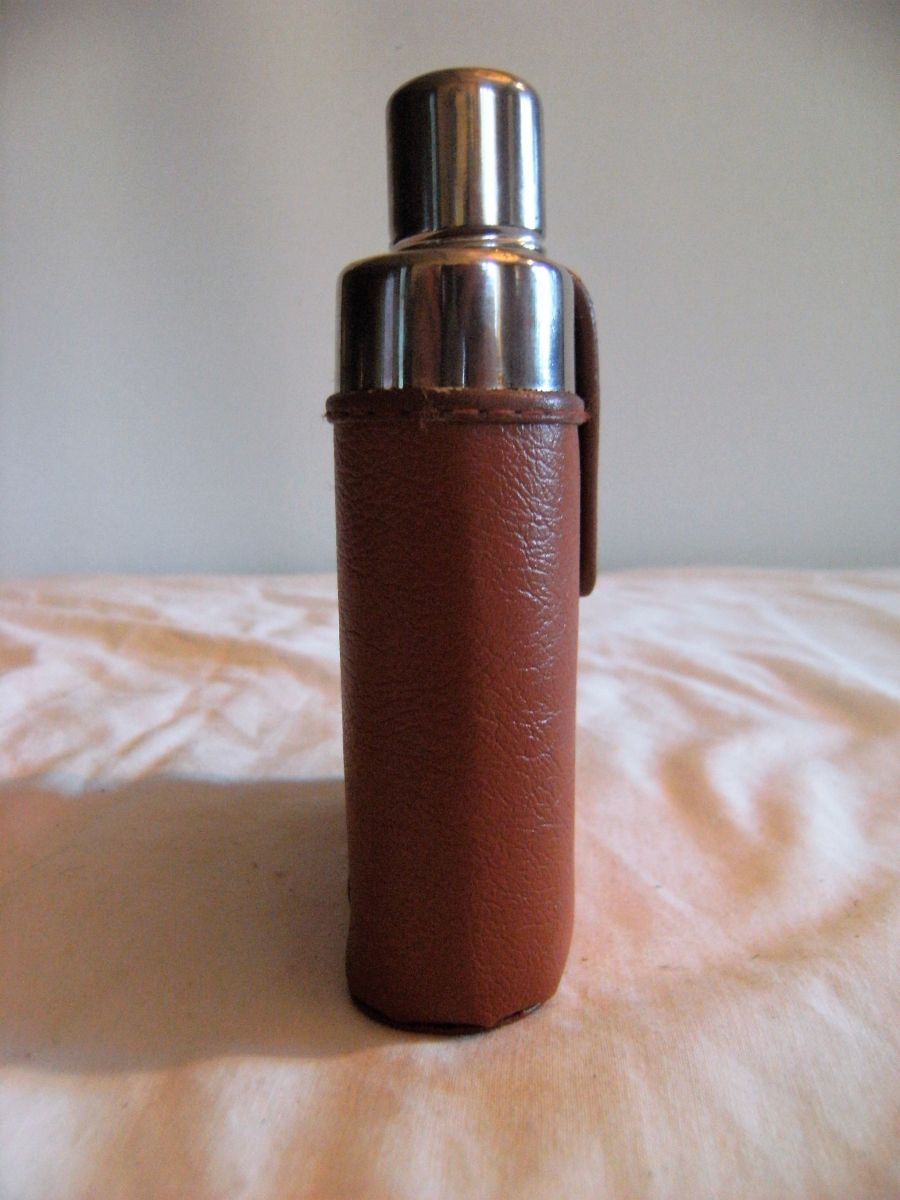 Fiole alcool étui cuir marque Kuang Huel vintage