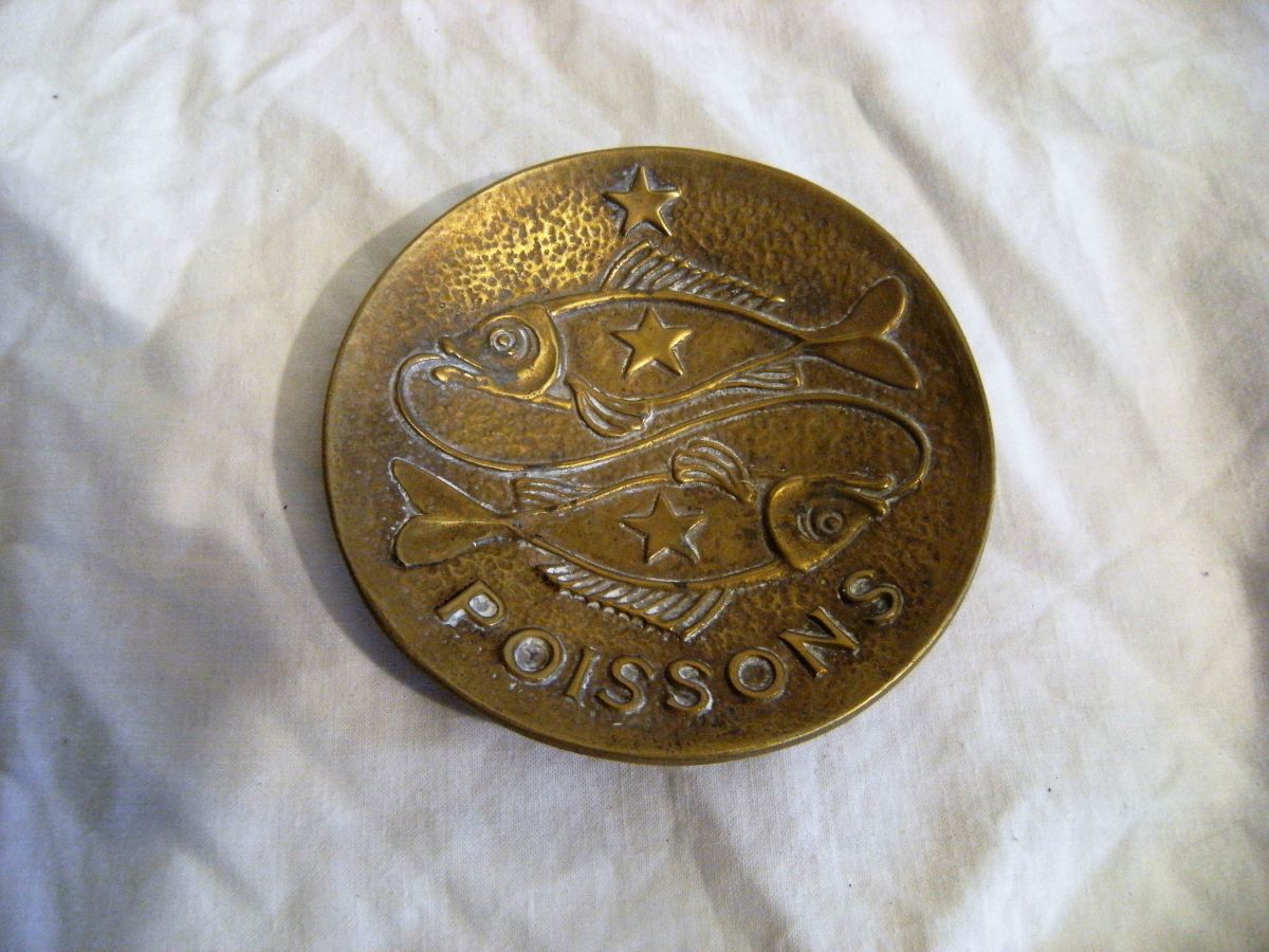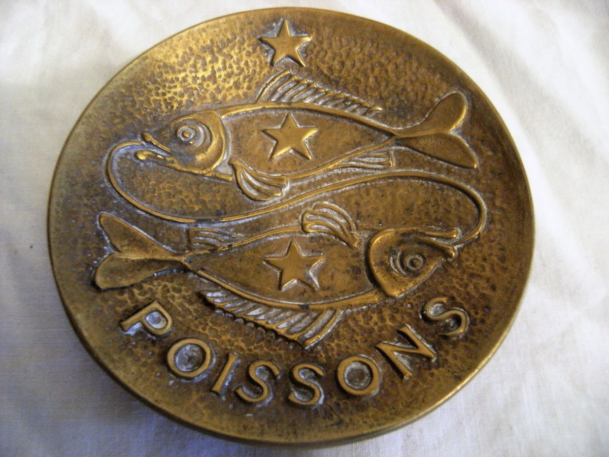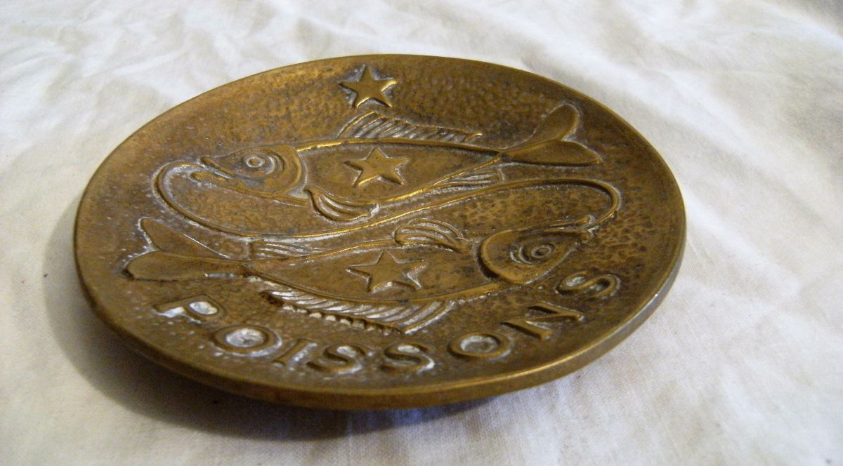 Vide poche,coupelle décorative en bronze ,art déco ,signé "Max Leverrier" , Motif "Poisson" série signe du zodiac.