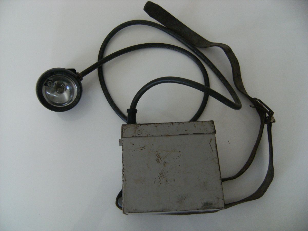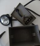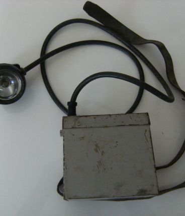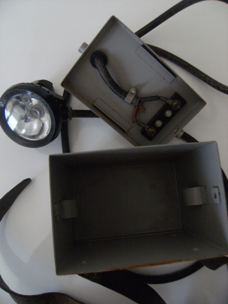 Lampe de mineur de marque "OLDHAM" ,Arras ! Agrément du 31/05/1951. Type GW. Porte batterie (sans batterie) ,ceinturon en cuir boucle laiton/fer en très bon état général (TBIII), câble- lampe (avec ampoules).L'ensemble en Très bon état général.