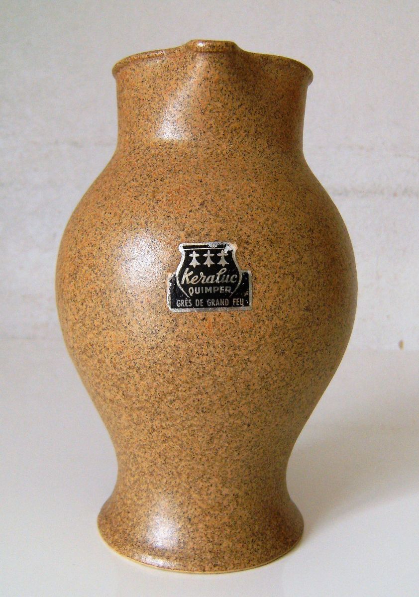 Cruche en grès "KERALUC" Quimper .Grès de grand feu ,vintage.