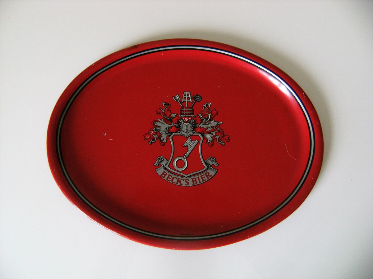 Plateau tôle émaillée/sérigraphiée bière "beck's