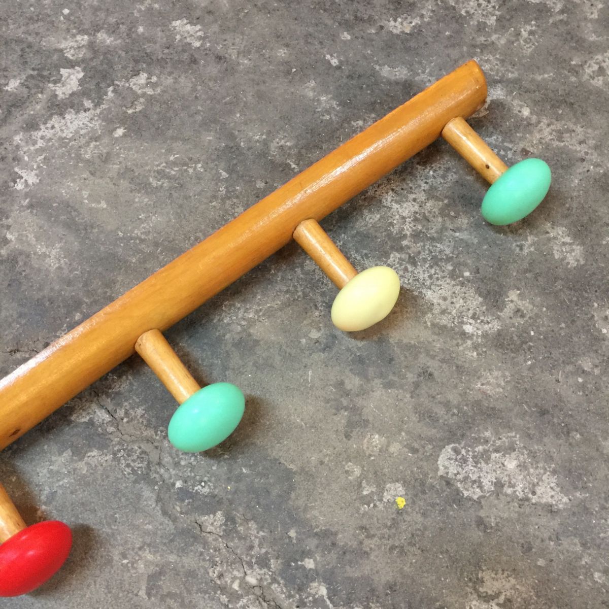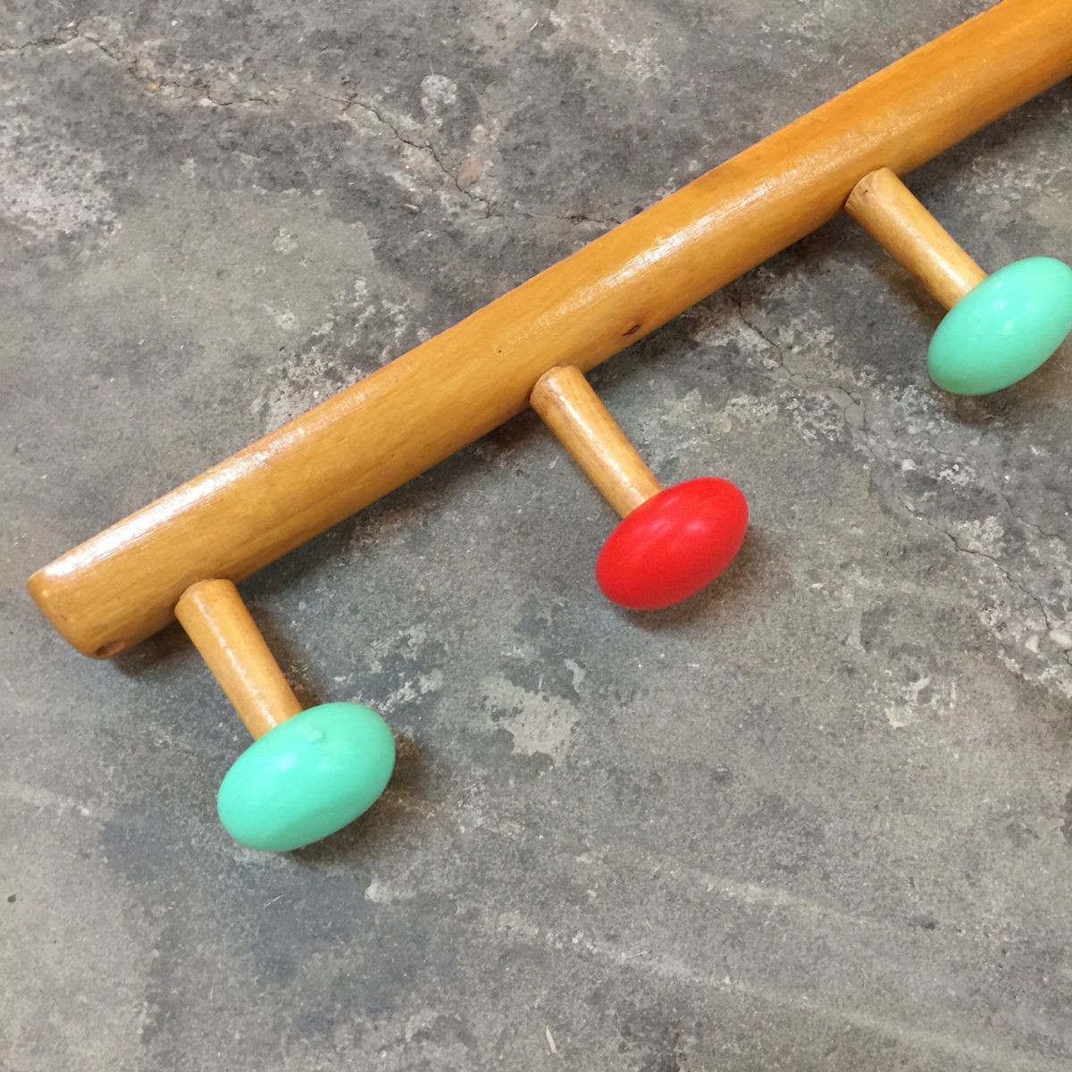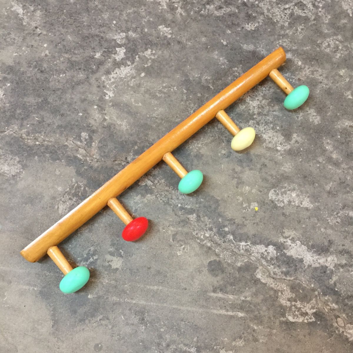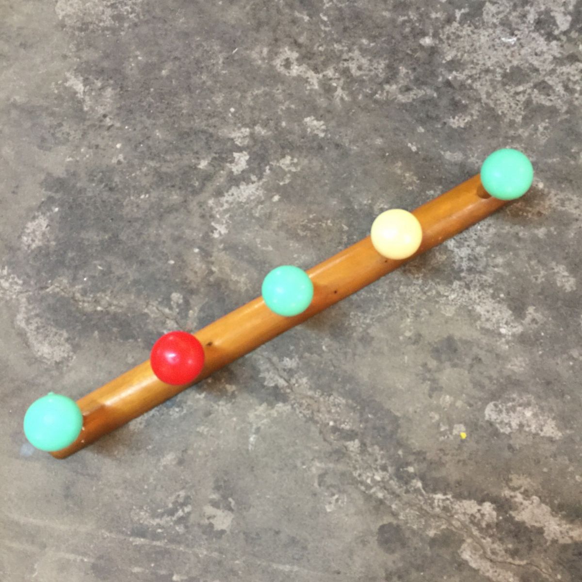 Patères porte manteau vintage en bois et boules en plastique coloré