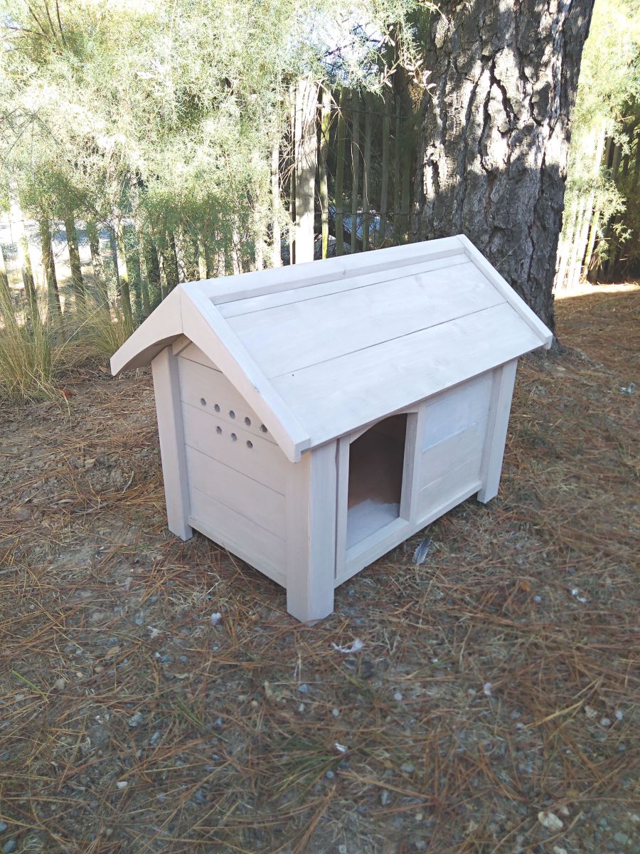 Belle niche d’intérieur, pour petit chien, fabriqué par un ébéniste. Pin massif sauf fond de caisse en contreplaqué.