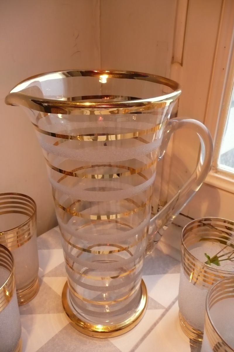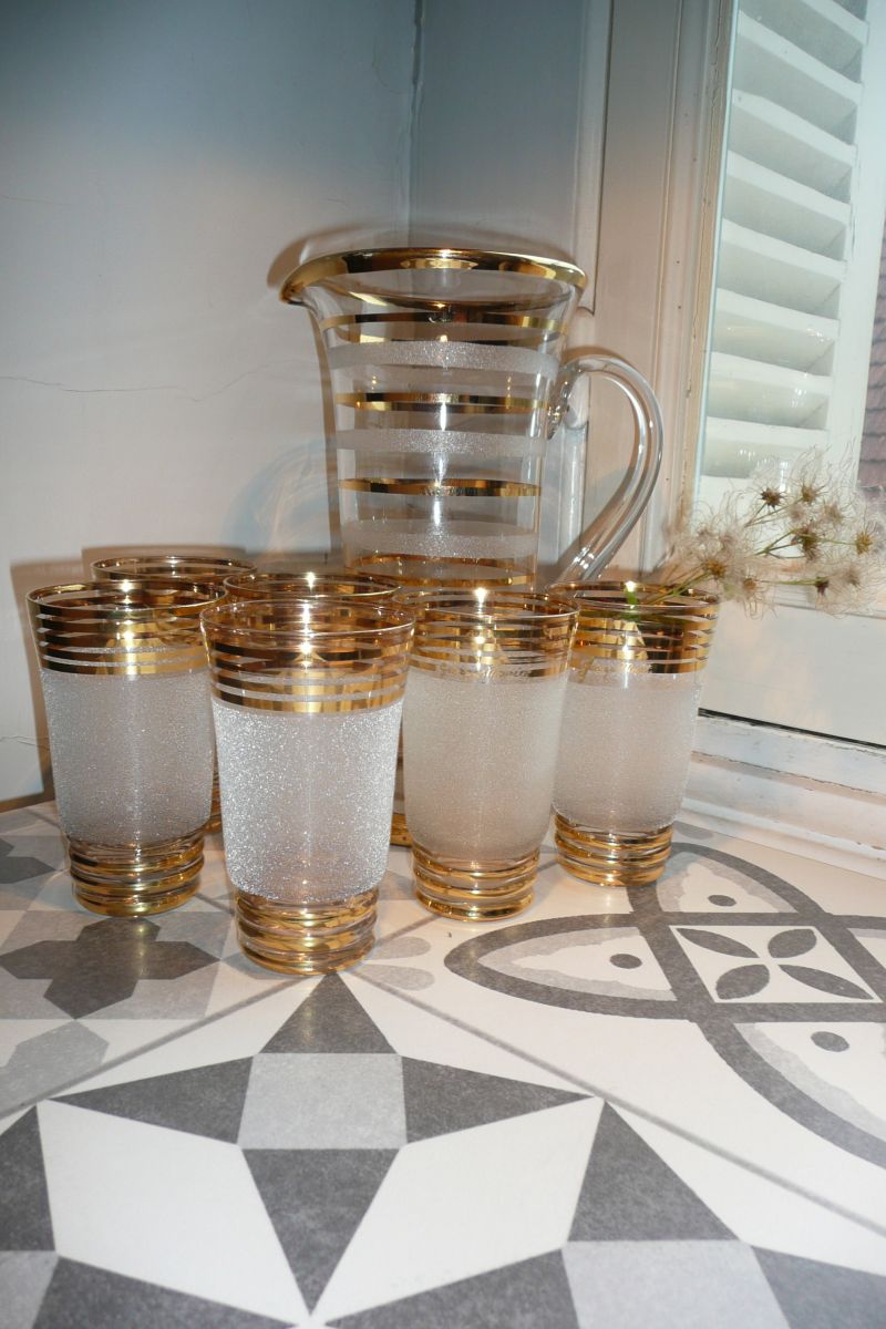 Très beau service à Orangeade granité blanc et doré comprenant
