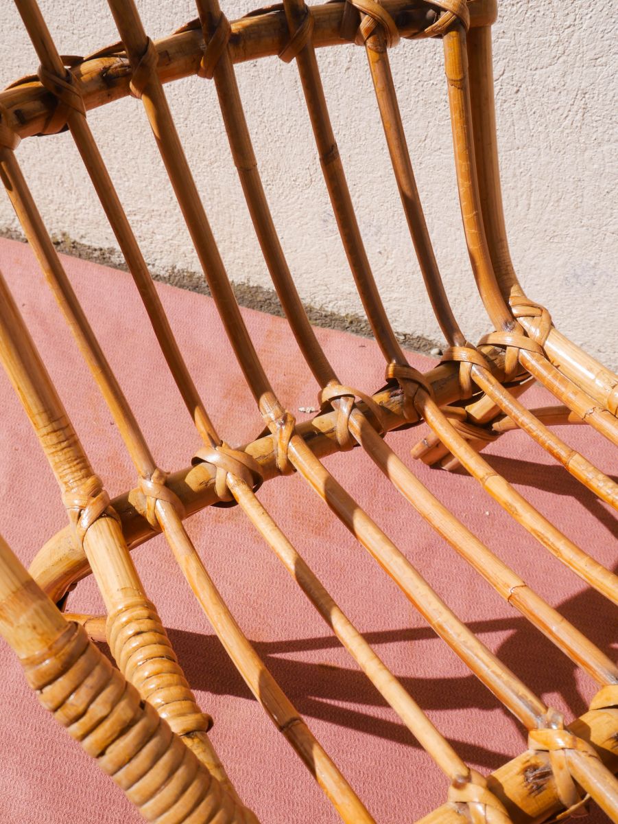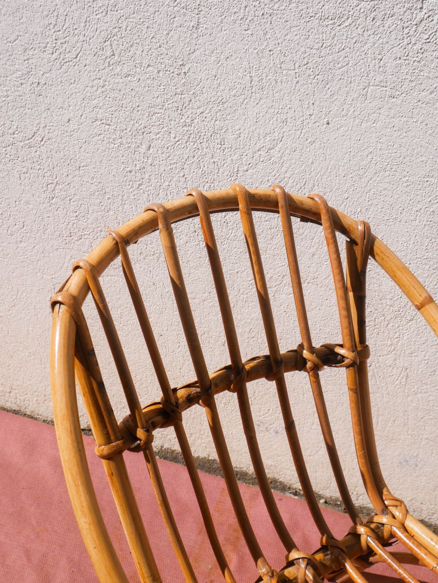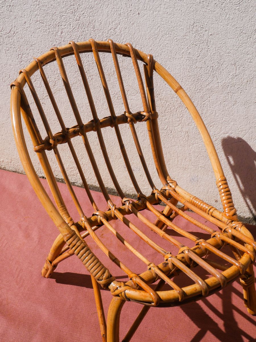 Charmante chaise coquille en rotin pour enfant. Dans un bon état. Le vernis a été refait. Aucune baguette ou fixation manquantes. Très solide ainsi que robuste. Il y a des nuances de couleurs sur l'ensemble de la chaise mais cela lui permet d'avoir une patine particulièrement vintage. Il est complètement tendance et très apprécié des enfants. Dimensions : H 47 ; H Assise 23 ; Largeur 34 ; Profondeur 34