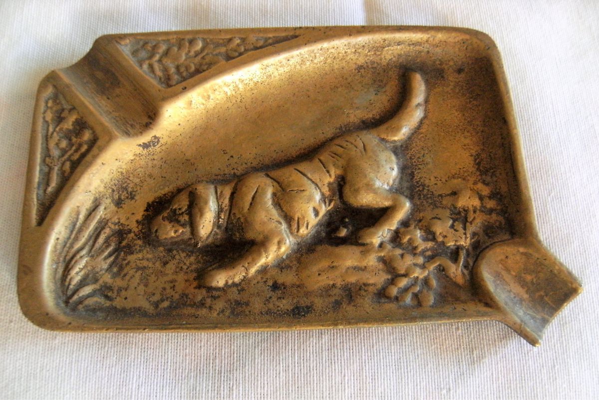 Vide poche cendrier bronze chien chasse