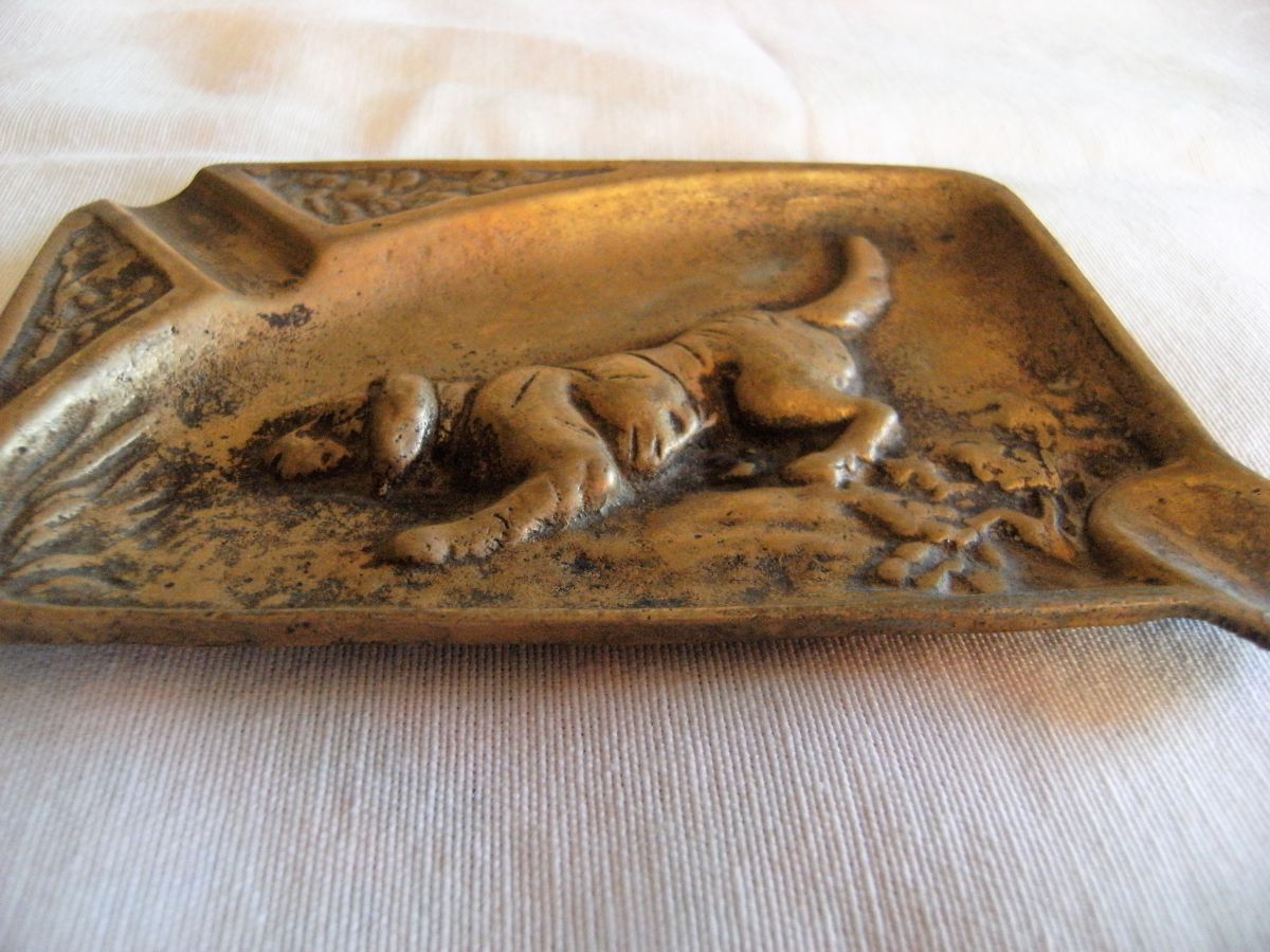 Vide poche ,cendrier en bronze ,motif "chien de chasse" ,scène de chasse,setter irlandais ,pointer.