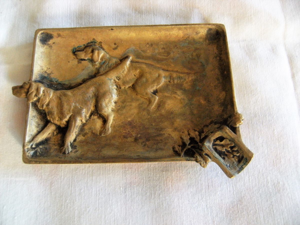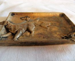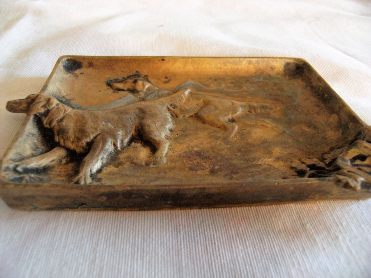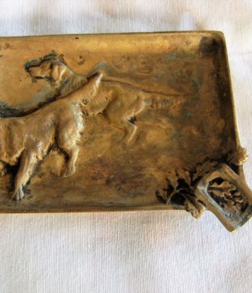 Vide poche ,cendrier en bronze ,motif "scène de chasse,setter irlandais ,pointer" numéroté : 1644 .Numéro légèrement "passé" .