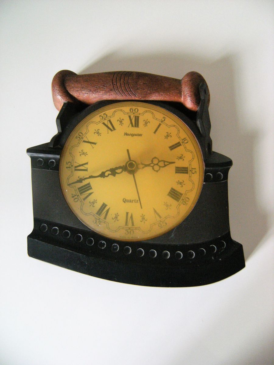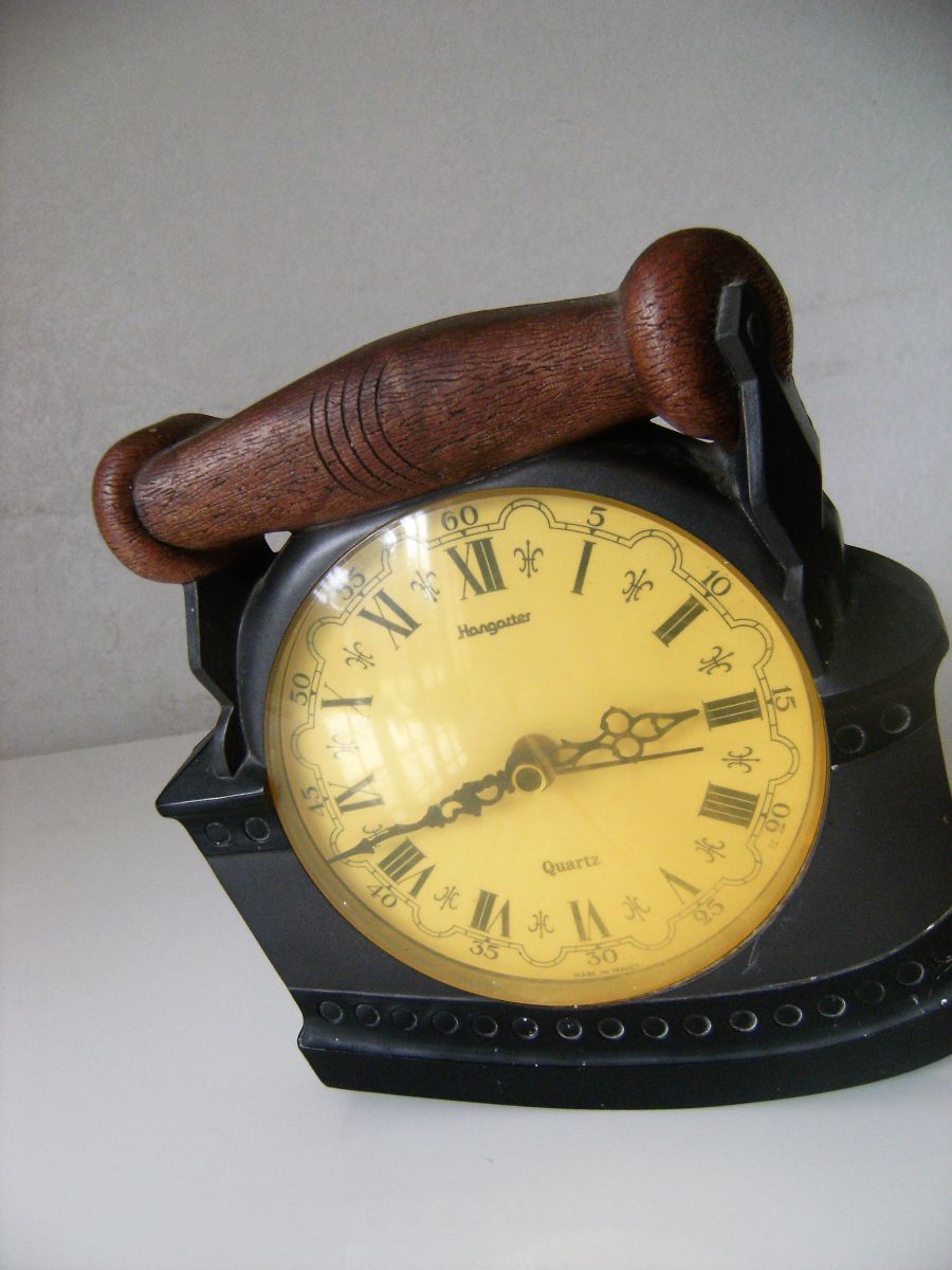Horloge murale en plastique dur vintage en forme de fer à repasser .Originale. De marque "HANGARTER" made in France .Quartz .
