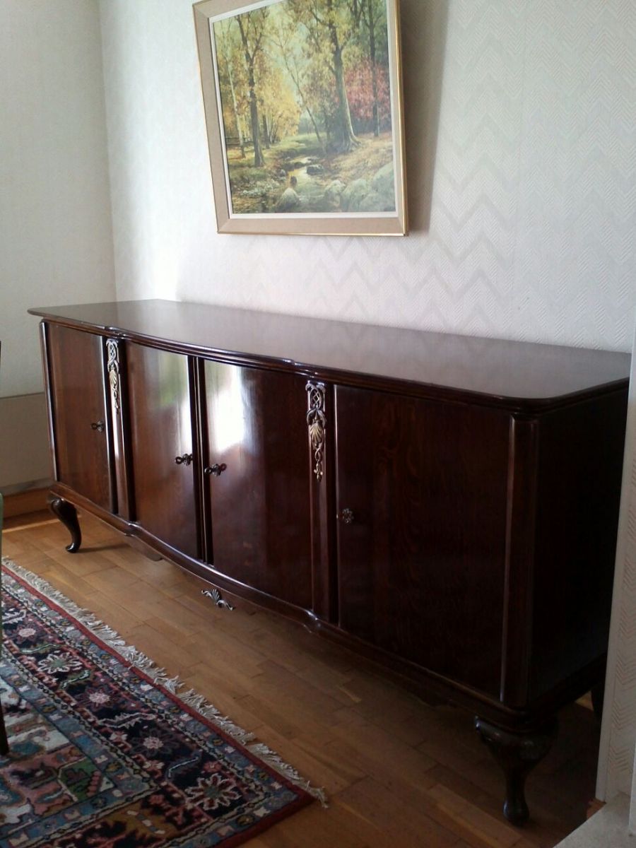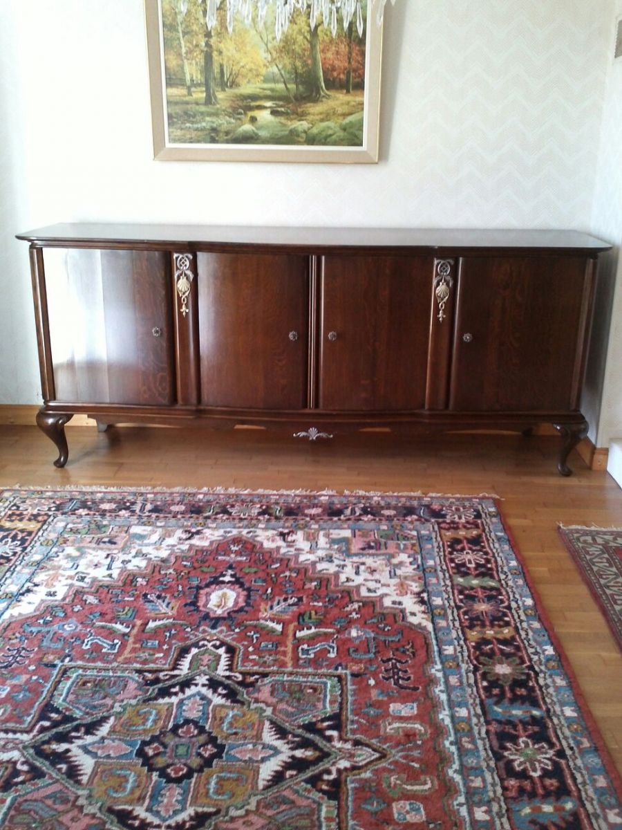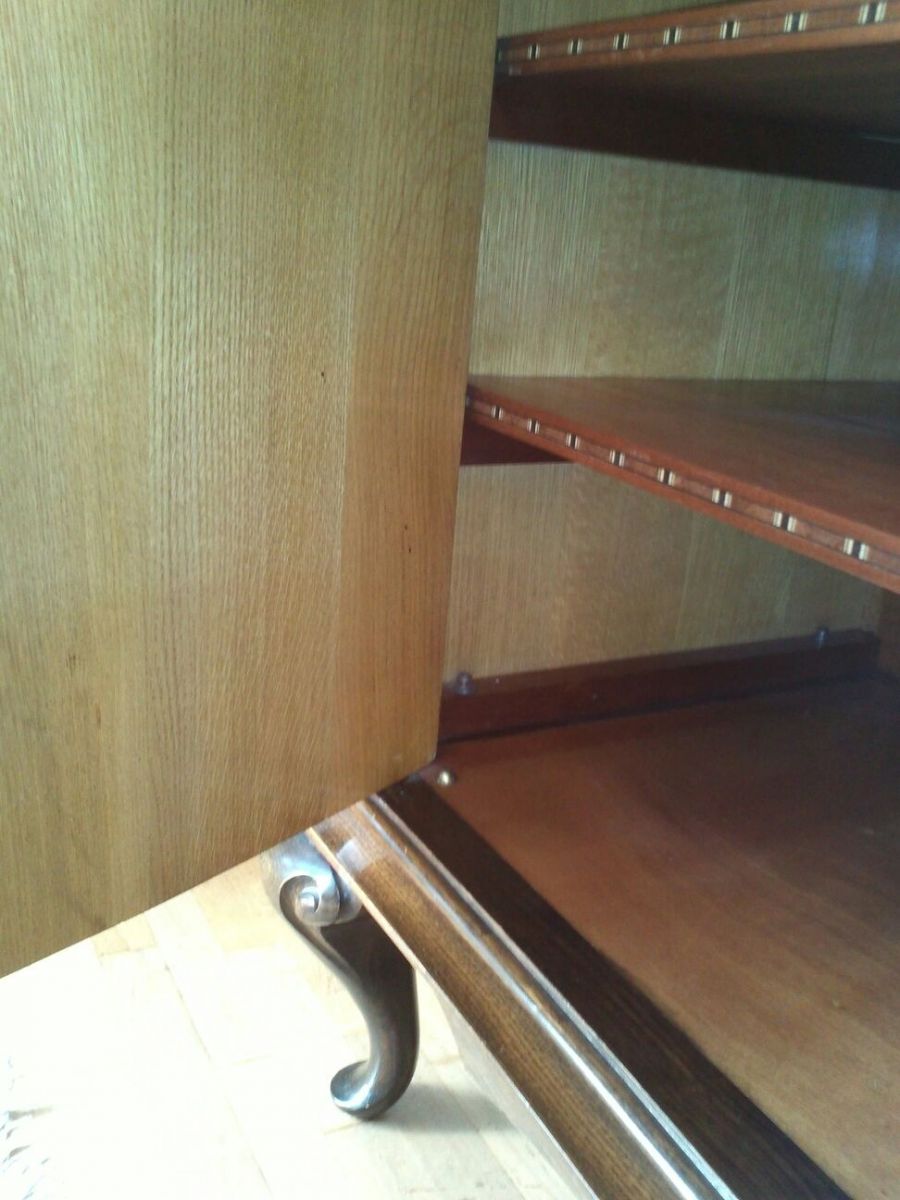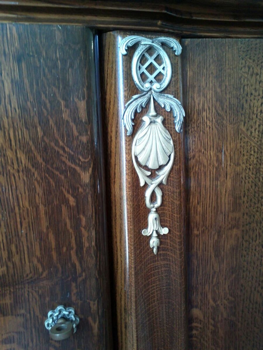 enfilade en chêne massif chippendale revisité année 1960, chêne verni très foncé, beau veinage, avec décor en métal , belle finition intérieure .