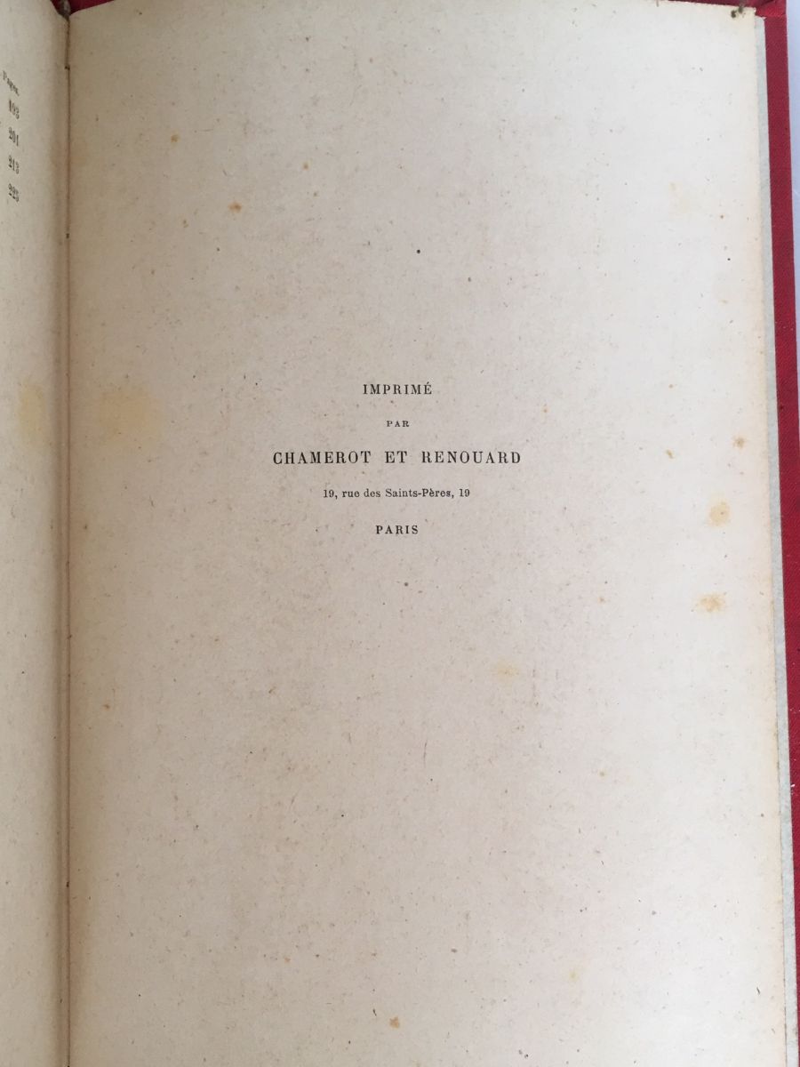 Couverture rouge avec motifs et lettres dorées. Tranche dorée