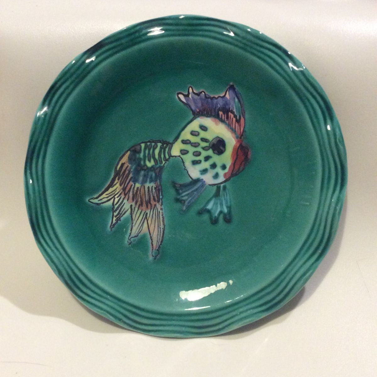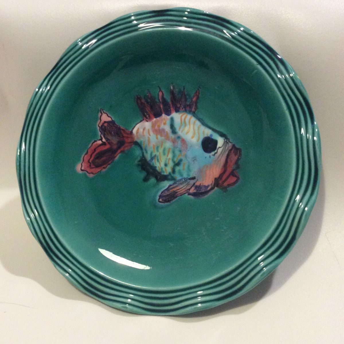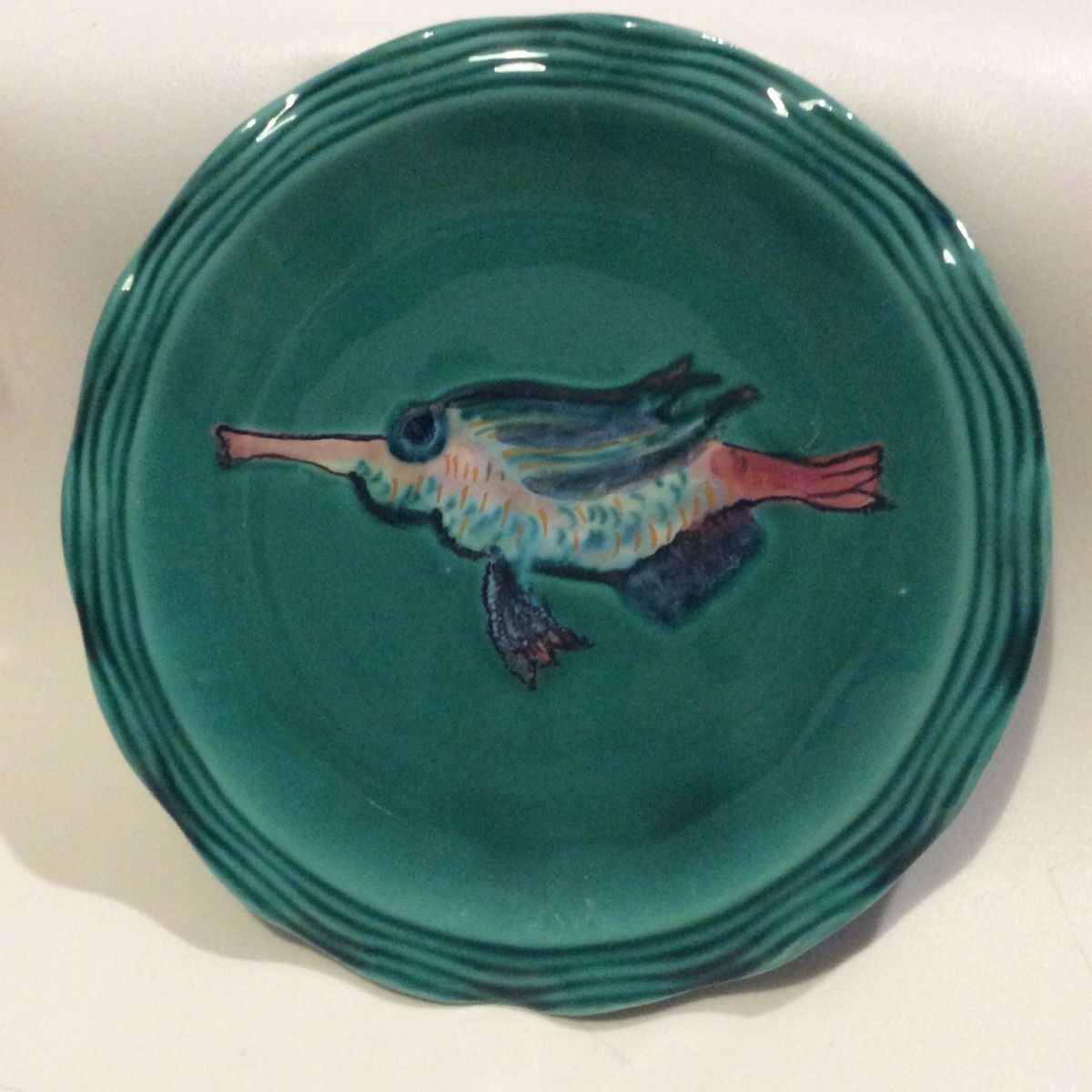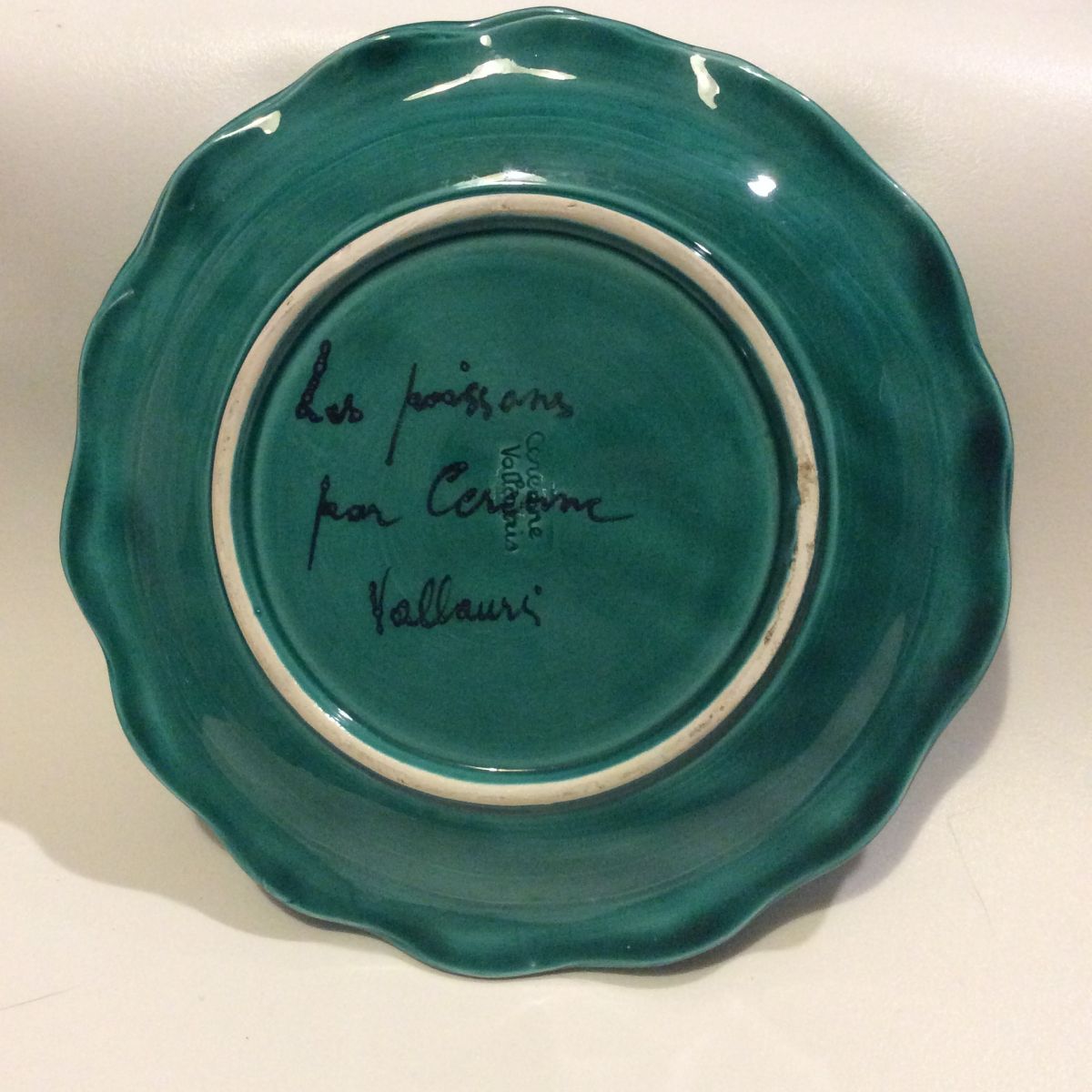 3 assiettes au décor de poisson stylisé marquée Cerenne Vallauris.