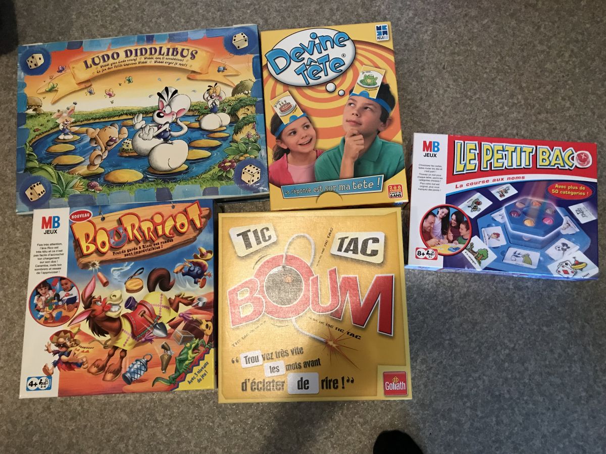 Lot de 5 jeux de sociétés en parfait état avec les notices pour chaque jeu, aucune pièce manquante.