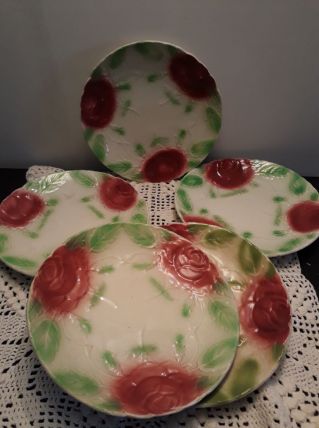 Assiette dessert barbotine, peinte au vaporisateur, diamètre 22,8 cm