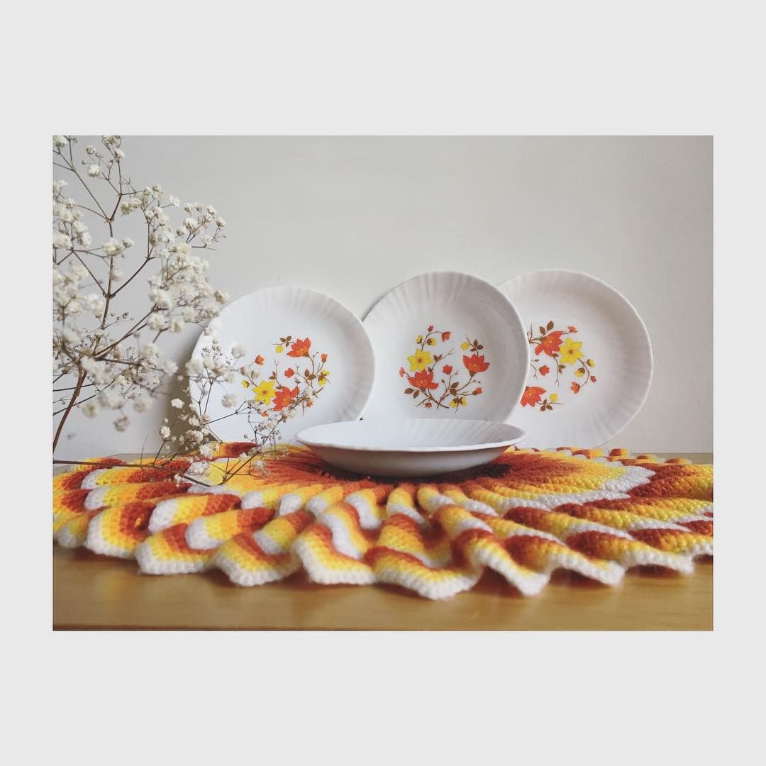 Ces jolies arcopal sont en parfait état, pas de fêlures, ni ébréchures, l'une d'entre elles a juste un manque au niveau d'un pétale (voir la dernière photo).