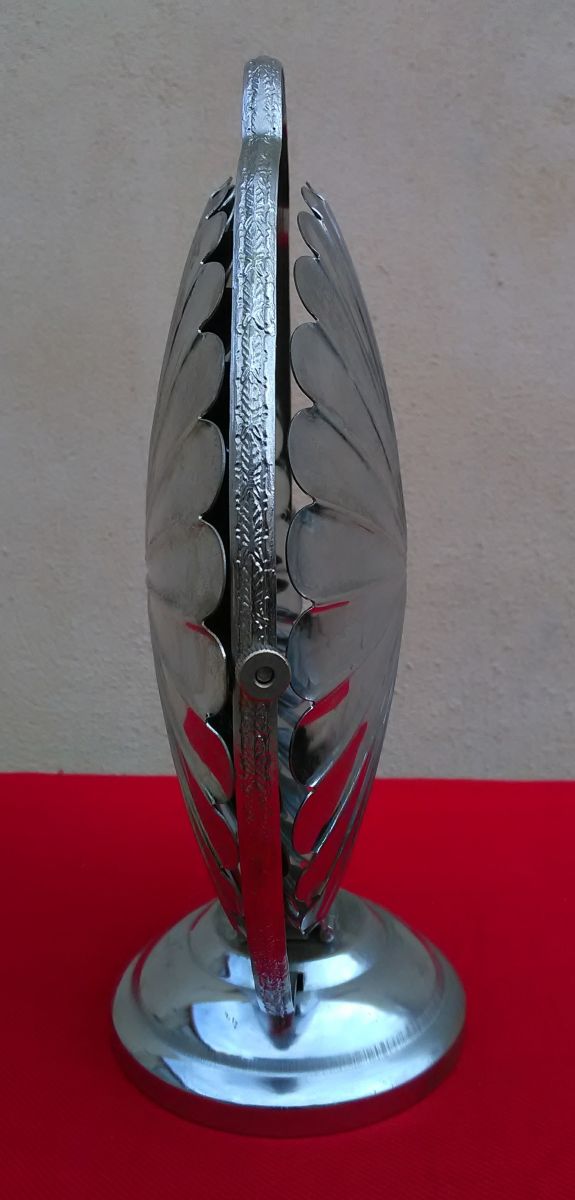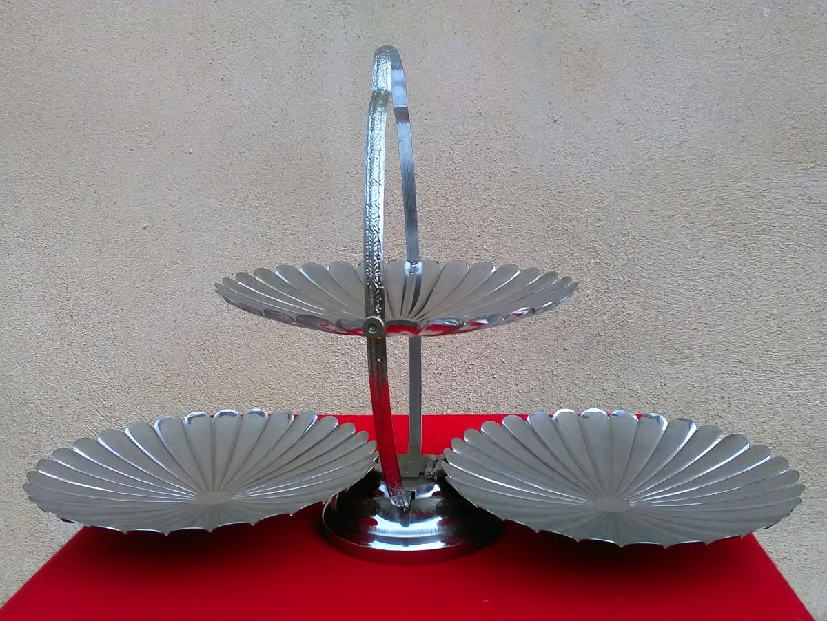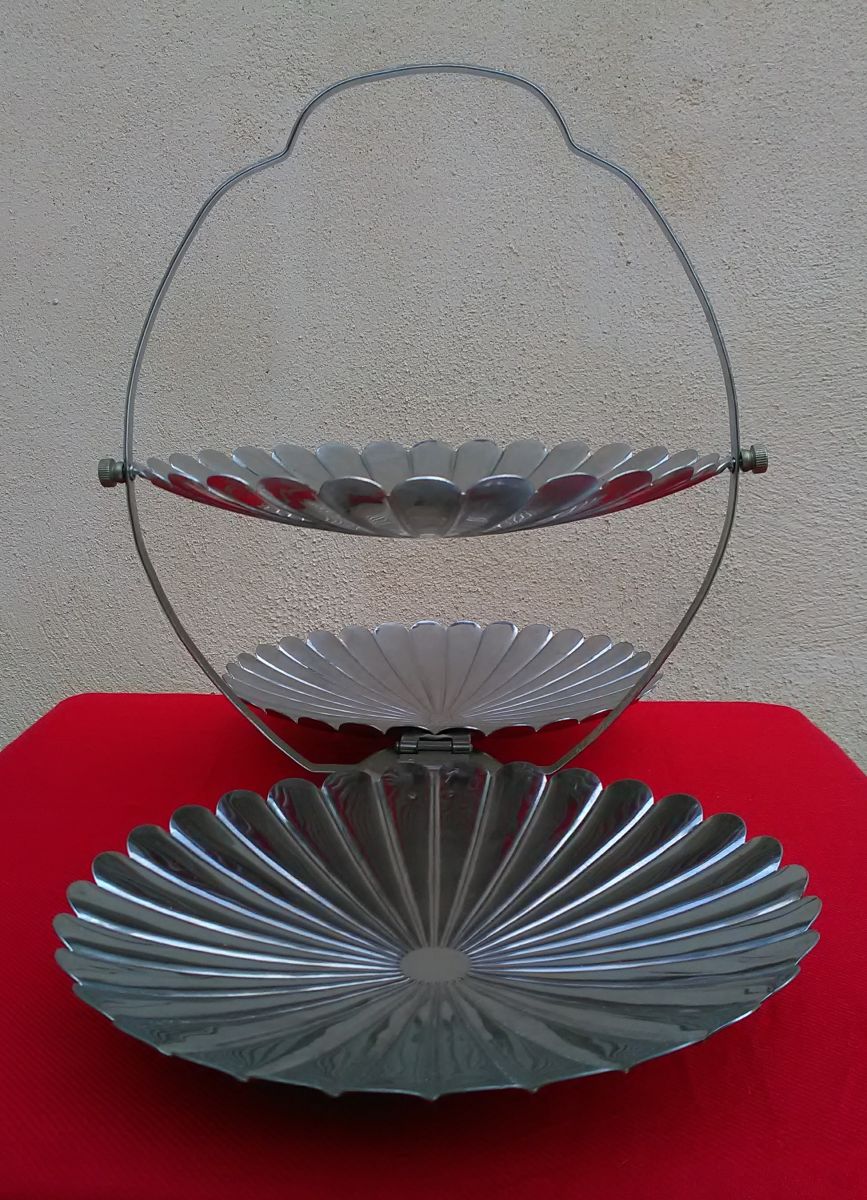 Joli présentoir à amuses bouches ou à mignardises en métal (style inox) et son anse en métal .