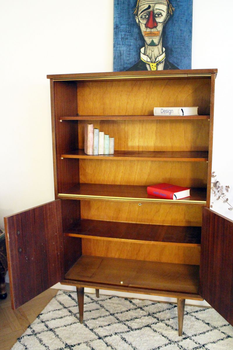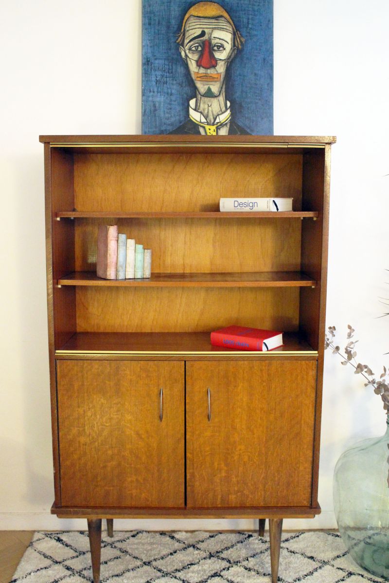 Meuble vitrine bibliothèque vintage pieds compas 50s
