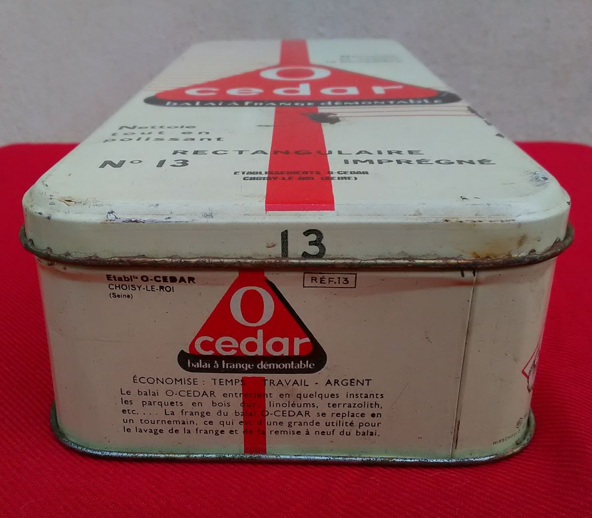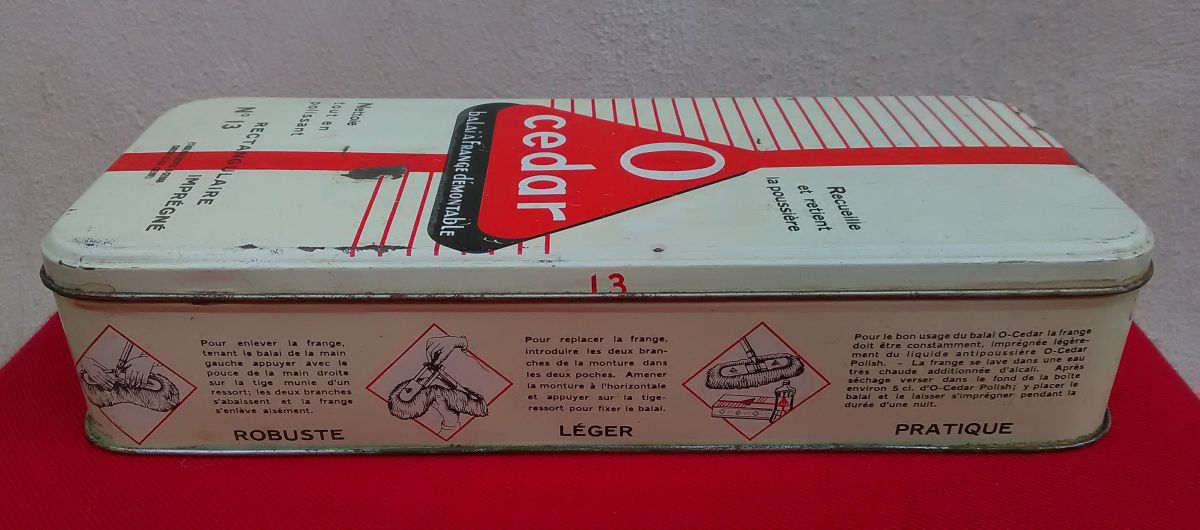 Jolie boite publicitaire en tôle O-Cedar n°13 (vide)