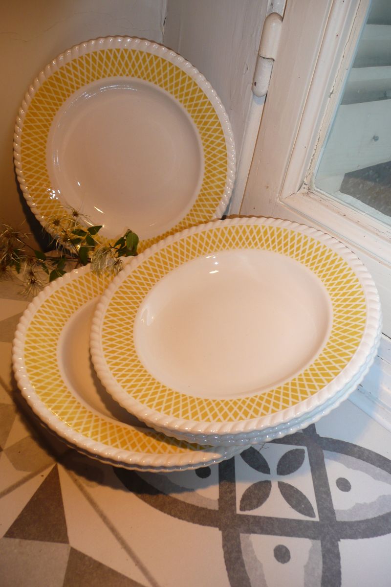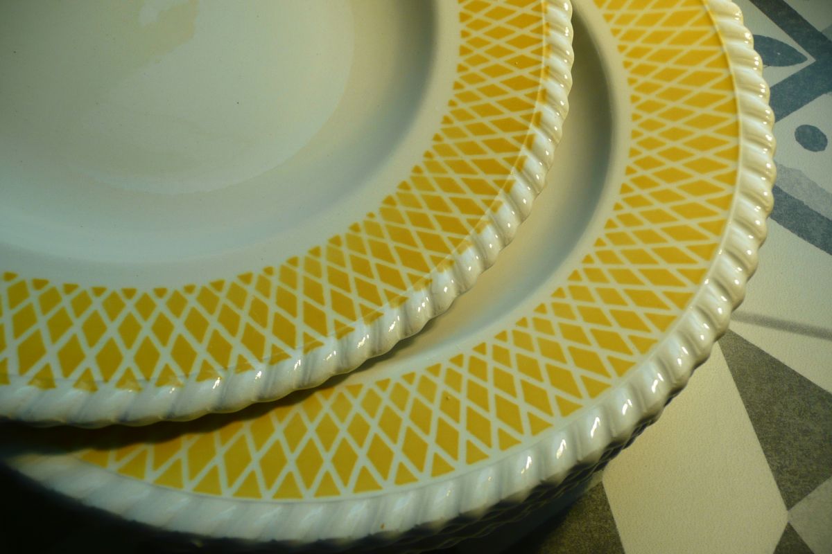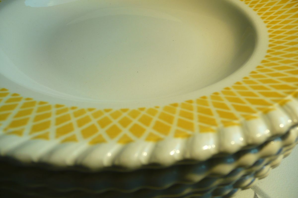 6 assiettes creuses "FB 16" jaunes relief Digouin