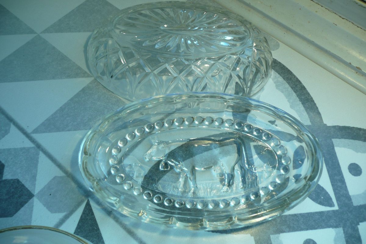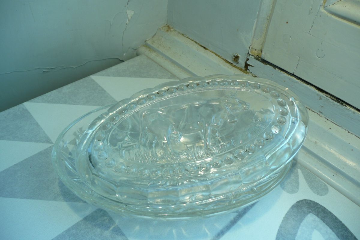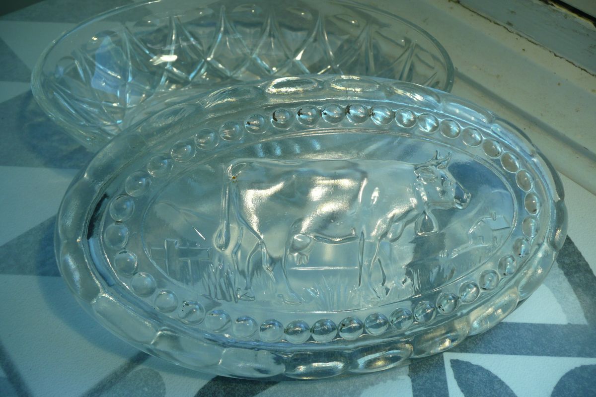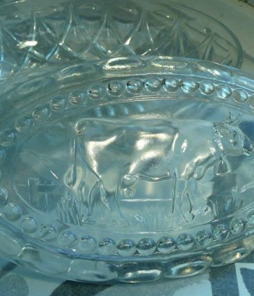Beurrier verre oval vache relief