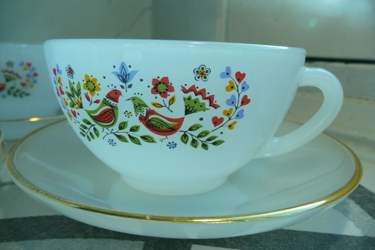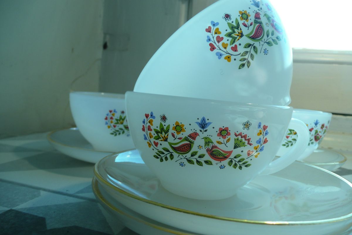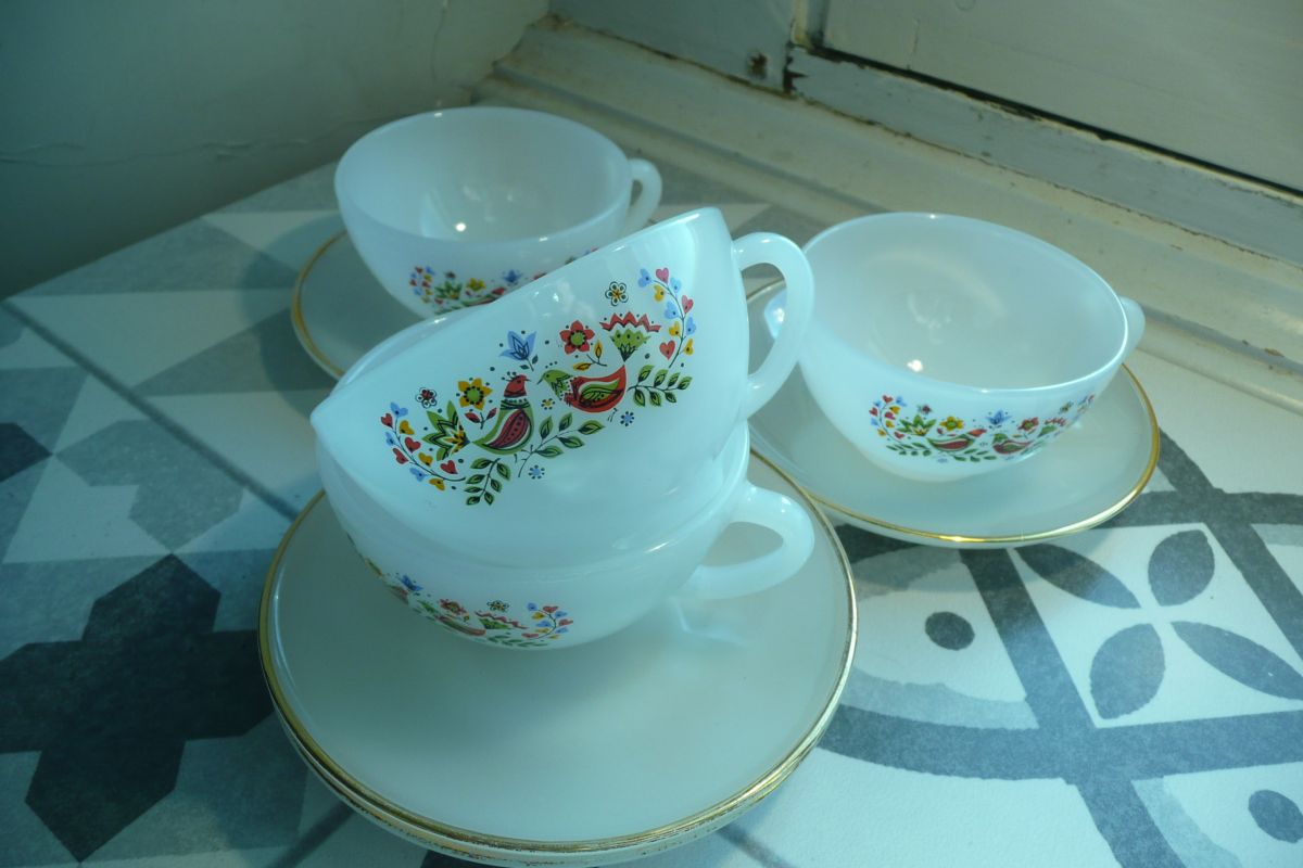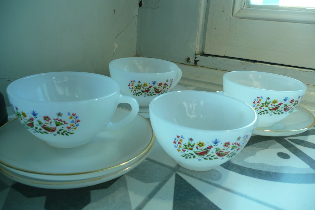 Ensemble de 4 tasses et 4 soucoupes liseré doré années 70