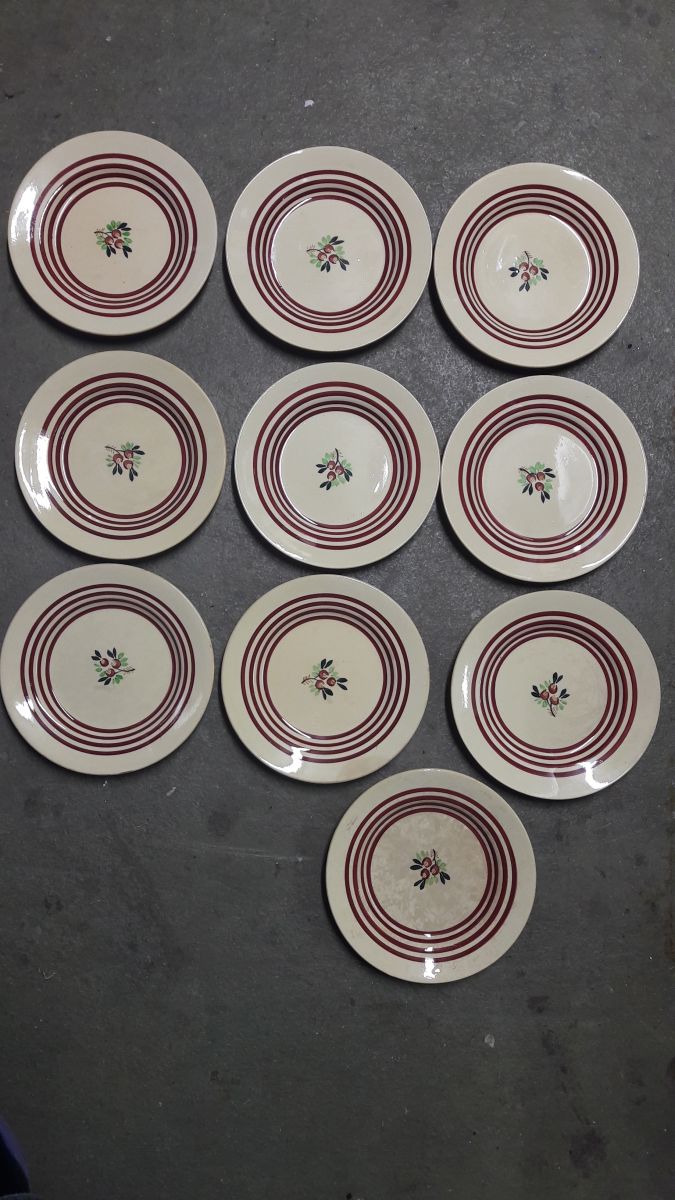 Lot de 10 assiettes à dessert en porcelaine de Gien.