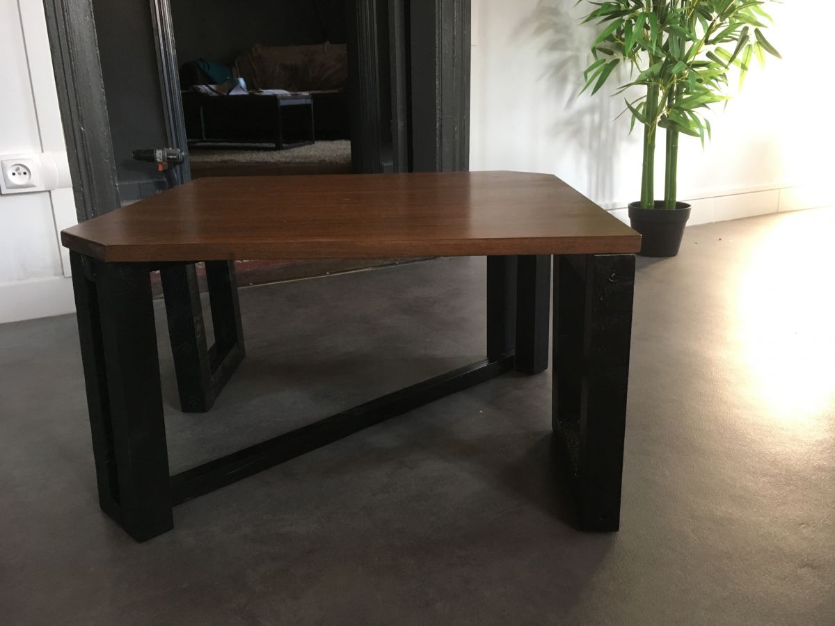 2 jolies tables basse de salon dans un esprit atelier industriel, réalisé intégralement en bois lasuré et peint