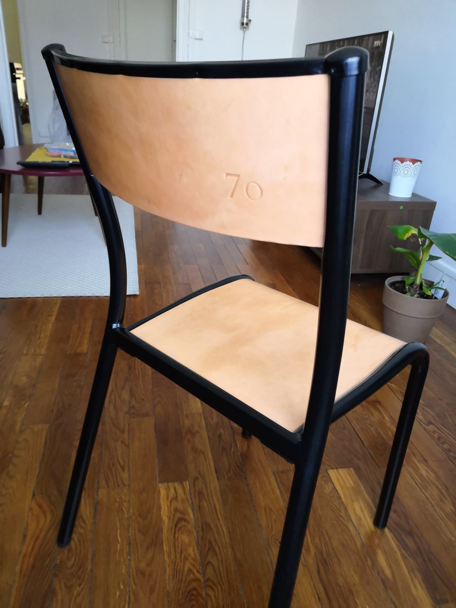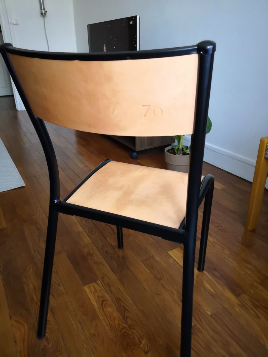 Gagnée à un jeu concours, c'est une chaise produite uniquement pour ce tirage. Unique en son genre, revêtement cuir véritable.