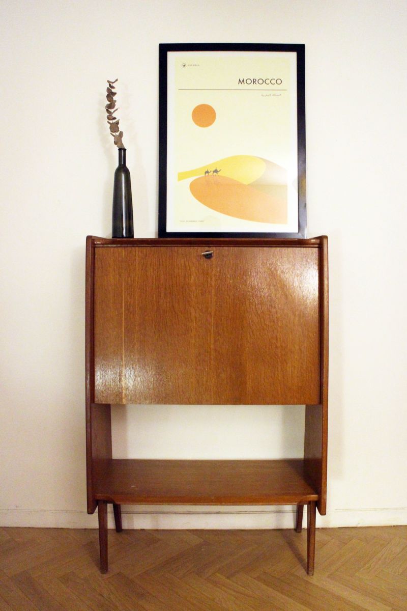 Secrétaire bureau vintage scandinave années 60 aux ligne épurées.