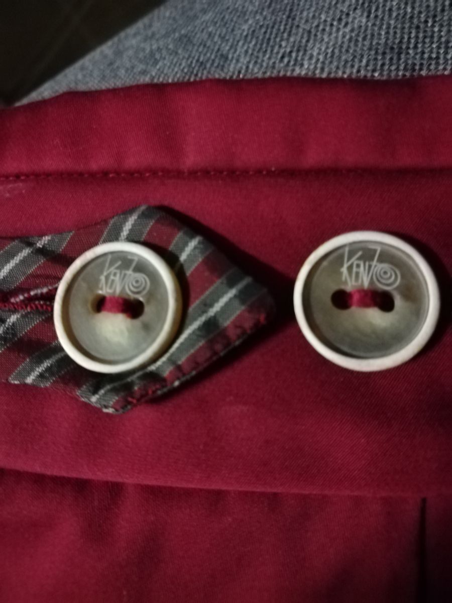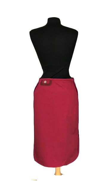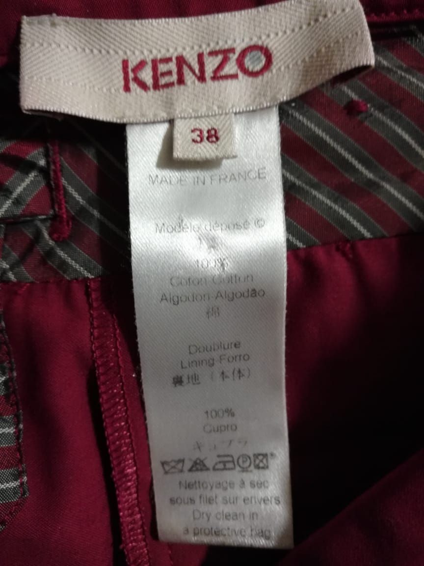 L'extérieur de la jupe est en 100% Coton rouge, avec 2 poches à l'avant et met en exergue des fausses poches ornées de boutons signés Kenzo à l'avant et à l'arrière.