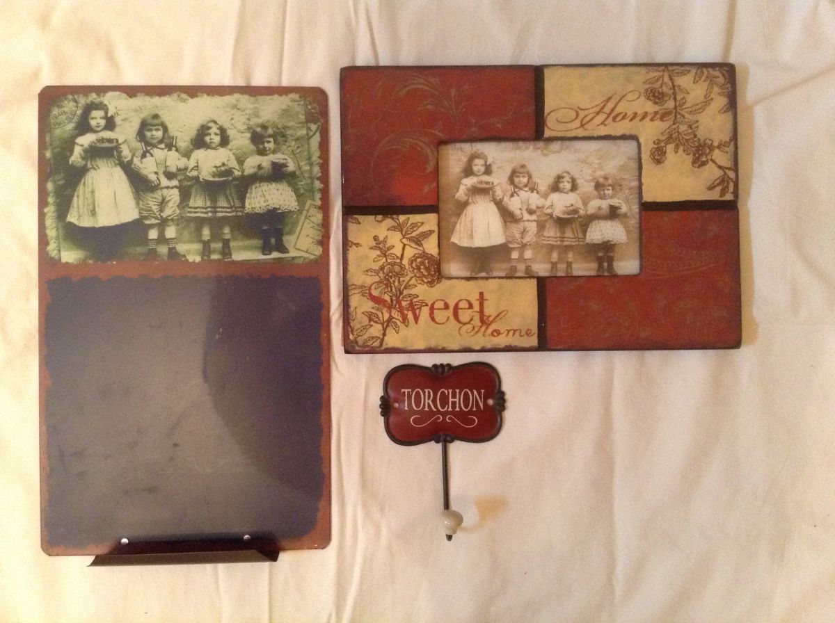 tableau memo en metal magnet ou craie dim 40x24 cadre en bois à poser dim33x24 patere en metal dim 11x15