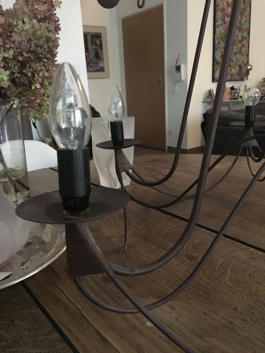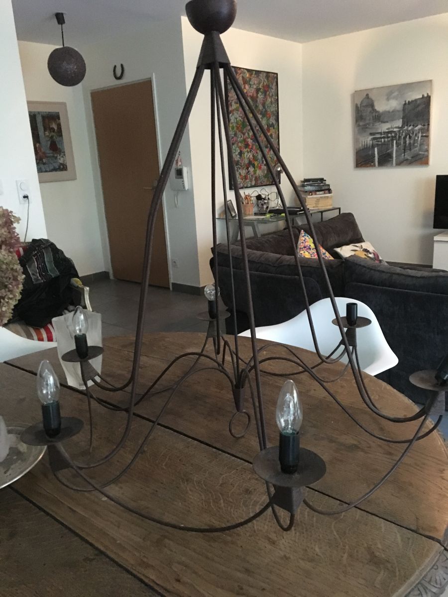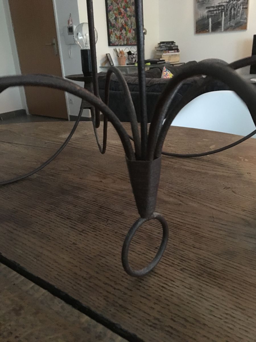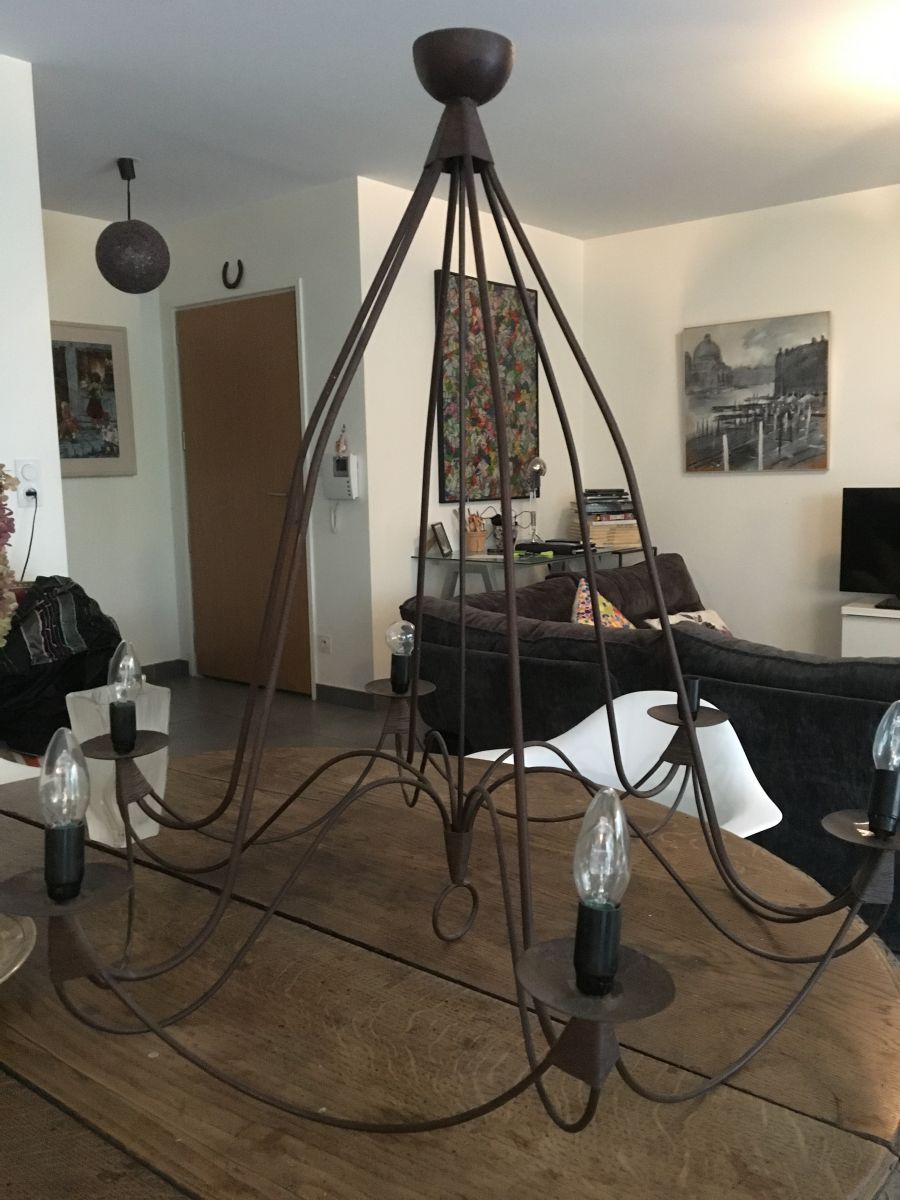 grande suspension en fer en bon état de 84 cm de hauteur et de 89 cm de largeur
