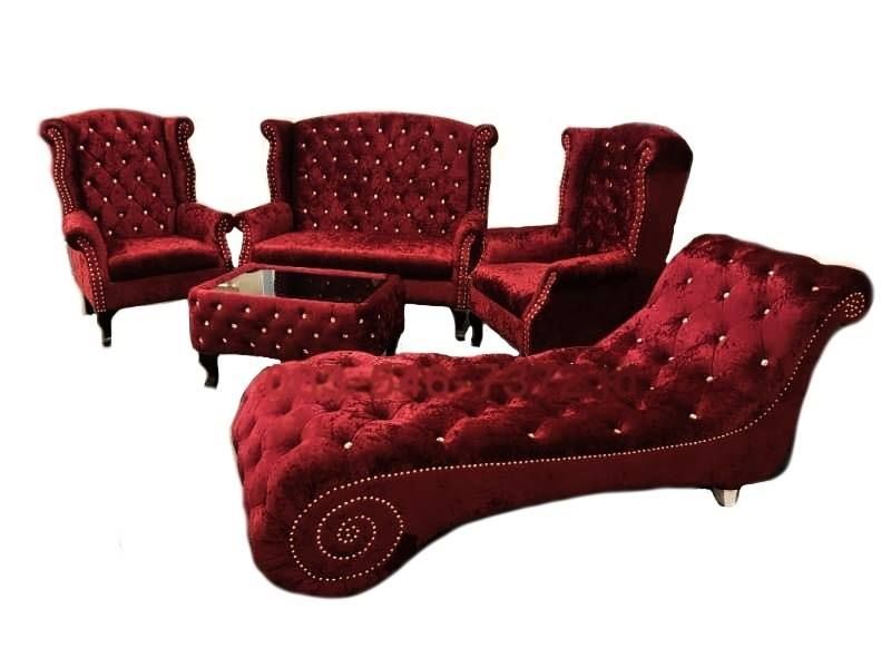 Set Salon Chesterfield Vintage aspect Velours rouge