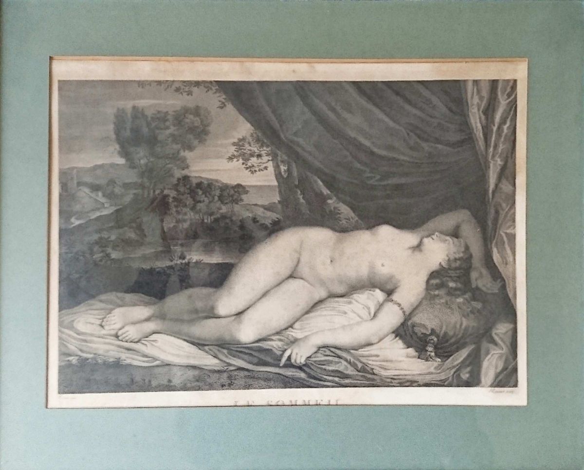 Gravure XVIIIe d'Antoine Louis Romanet "Le Sommeil"