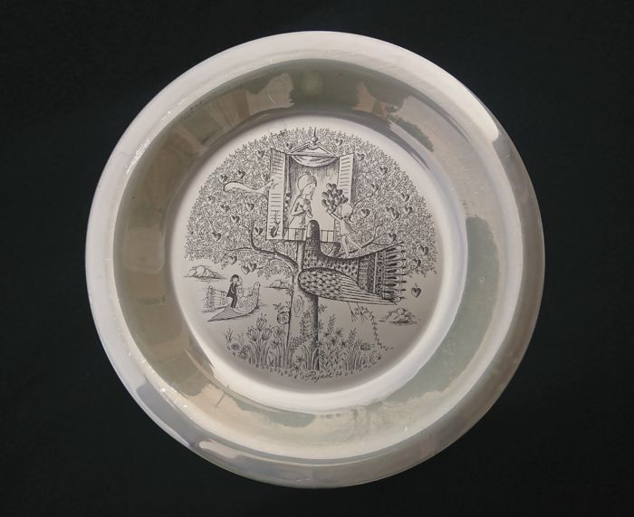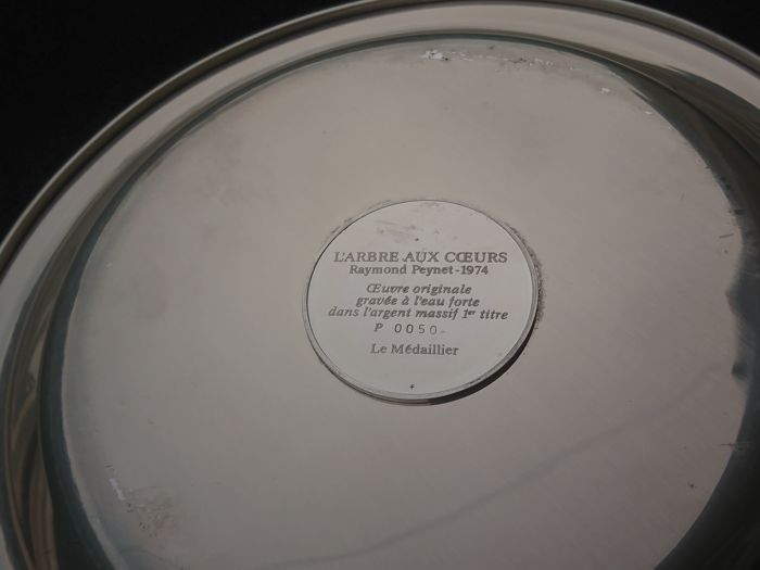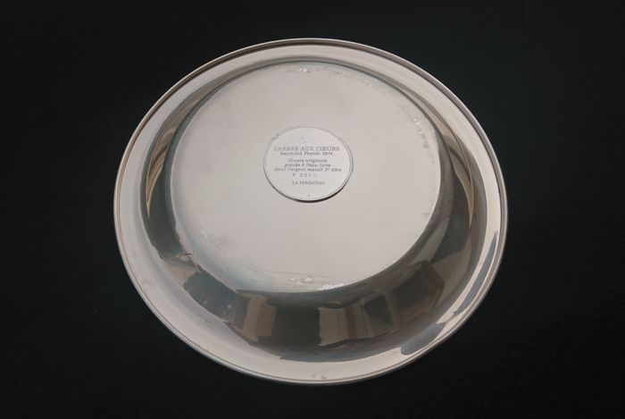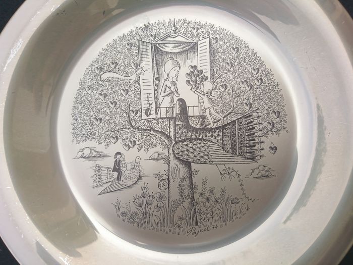 Assiette en argent massif de Raymond Peynet. Oeuvre originale gravée à l'eau forte - Argent massif 1er titre (925/1000)