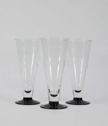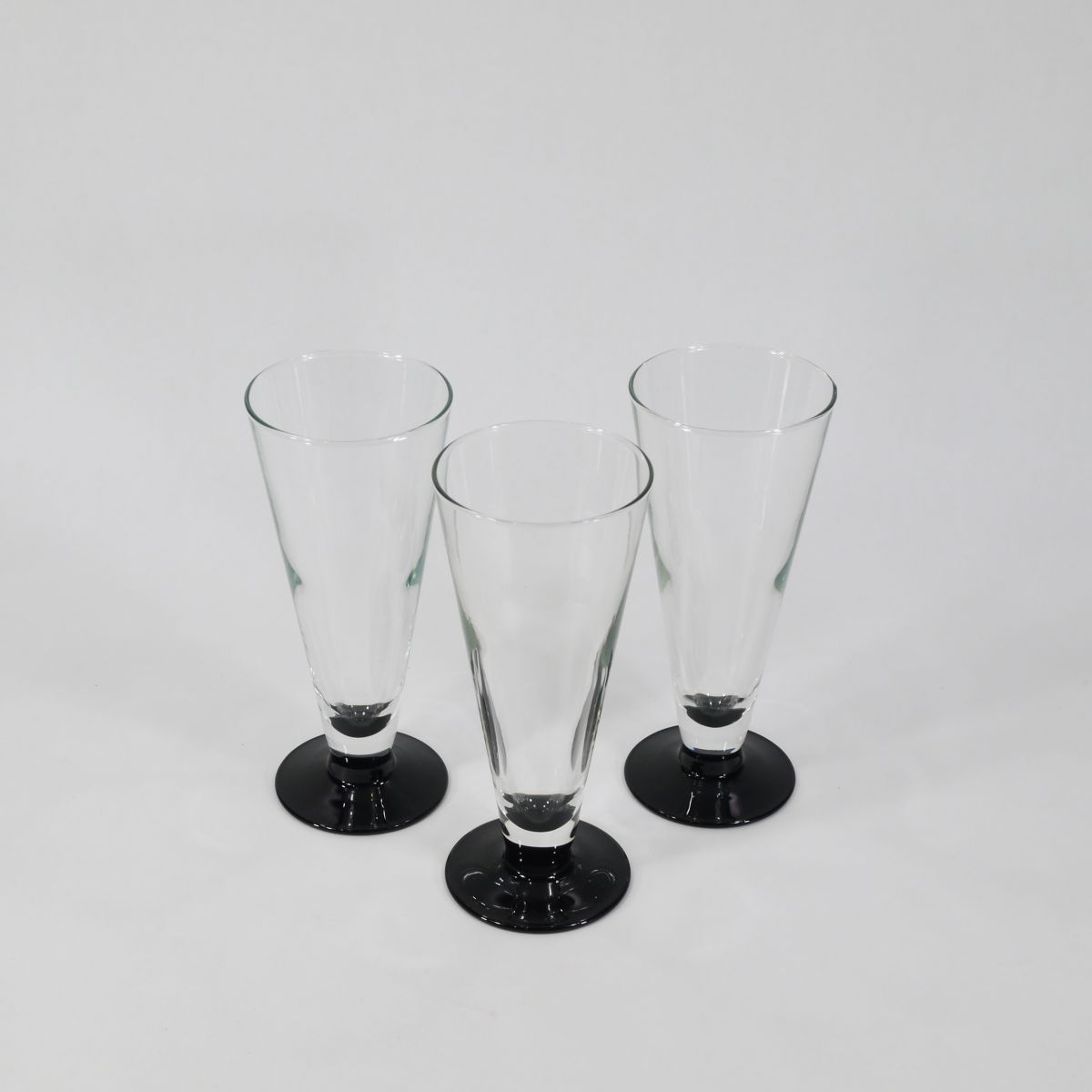 Trois verres triangulaire à pied noir. Idéaux pour champagne ou cocktails. Marque Luminarc, collection Kyoto.