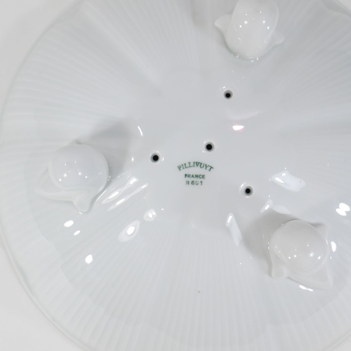 Coupe à fruits en porcelaine, de marque Pillivuyt. Jolis effets de matière et jolis pieds. Très bon état. Nous vendons dans la même collection un plat à asperges .
