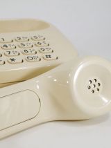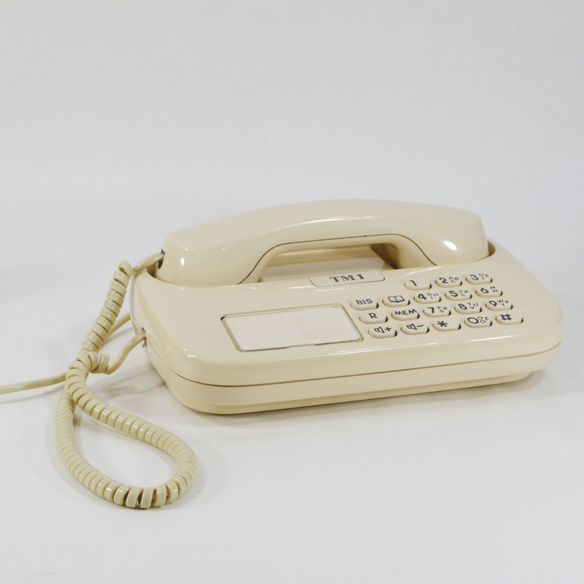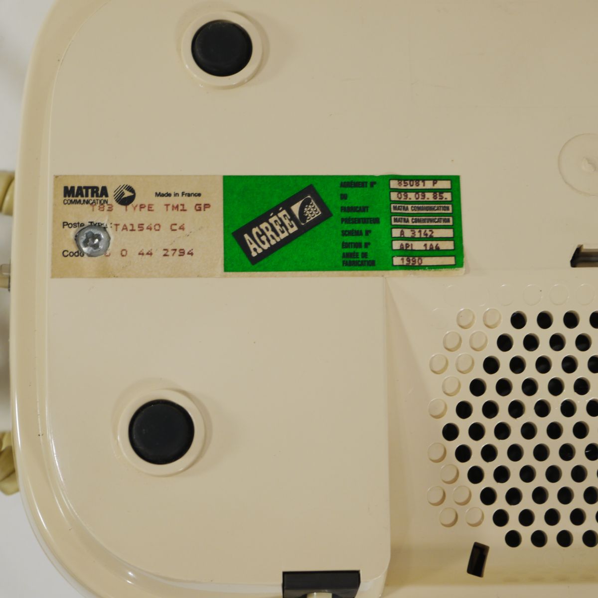 Téléphone vintage Matra TM1, blanc ivoire, datant de 1990. Bon état, fonctionne parfaitement.