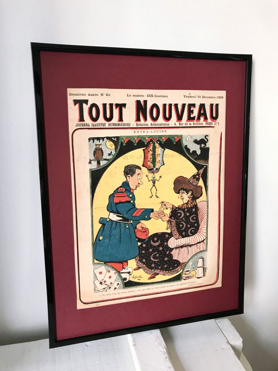 Tableau de la couverture du journal illustré en couleur TOUT NOUVEAU sorti en décembre 1909 « Extra-Lucide ».