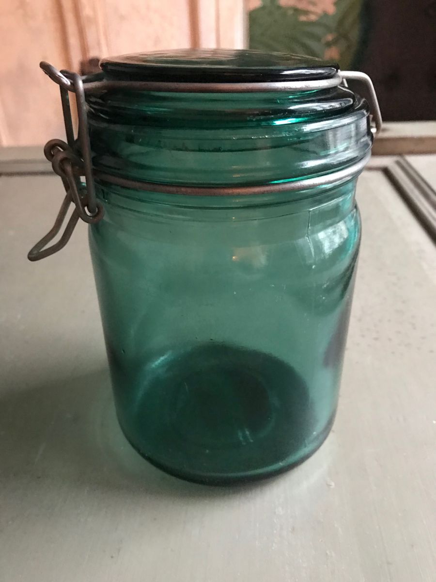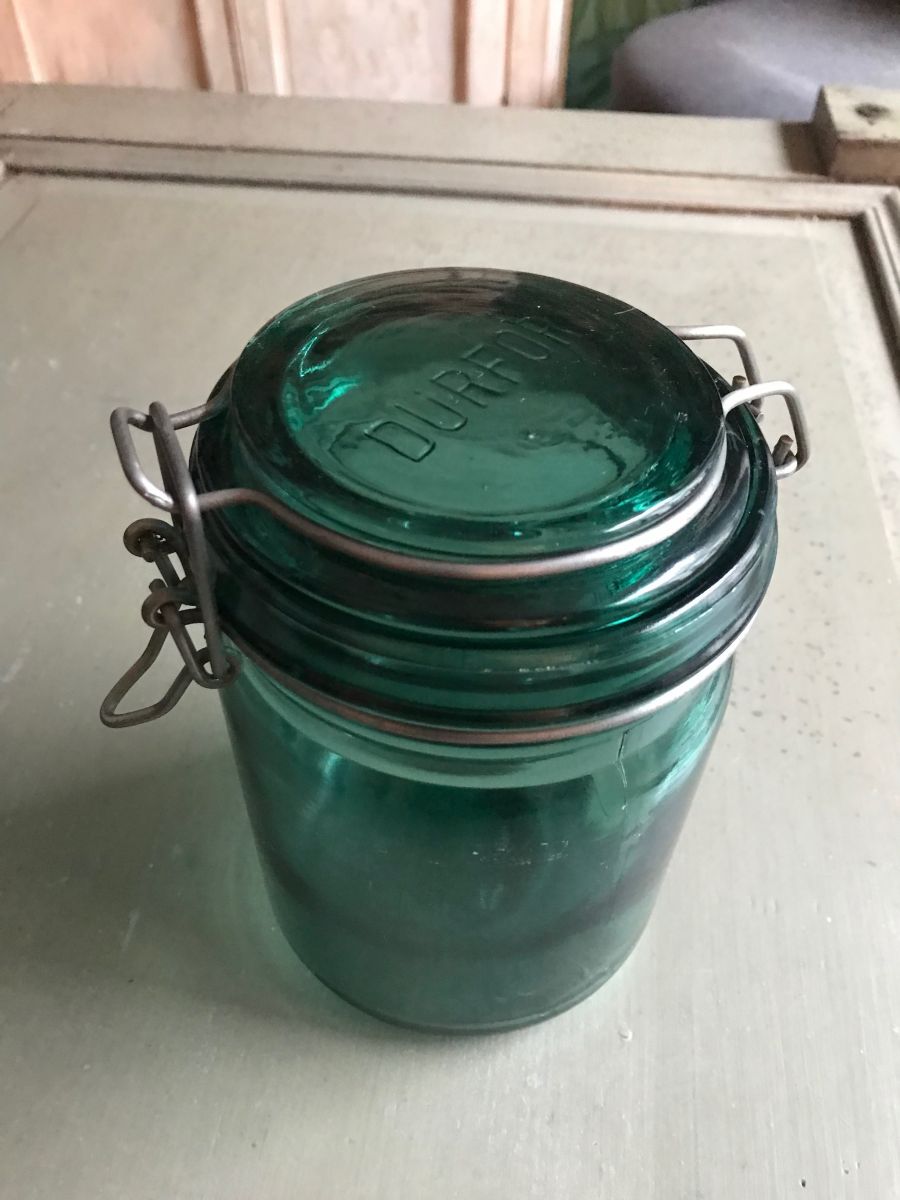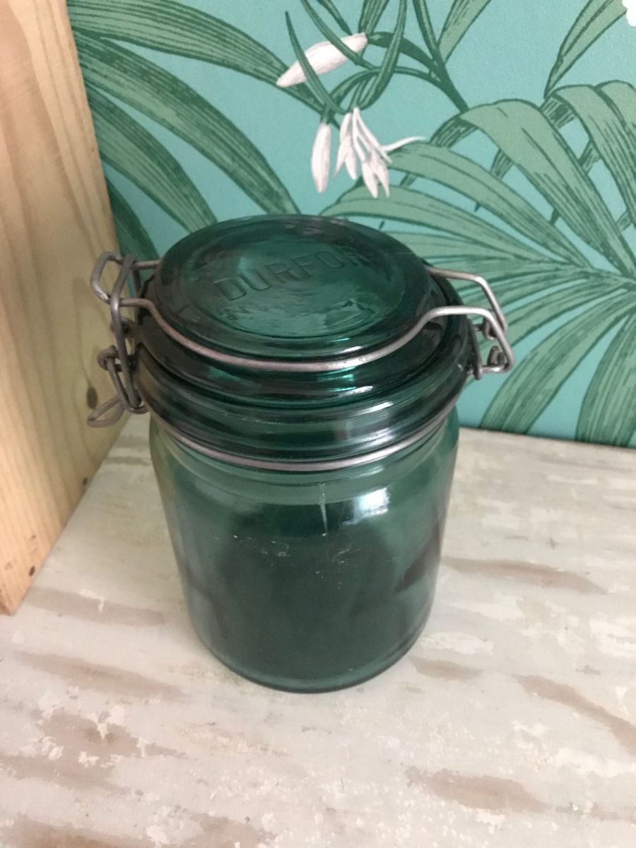 Authentique Bocal DURFORT made in France en verre de couleur verte en parfait état et nettoyé.