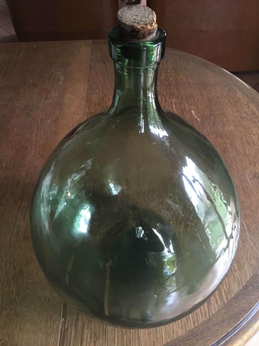 Belle dame Jeanne en verre vert, en parfait état. 22 litres et 46cm de haut.