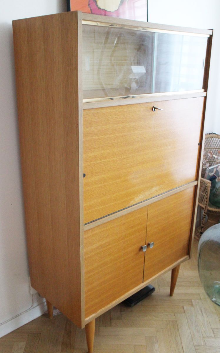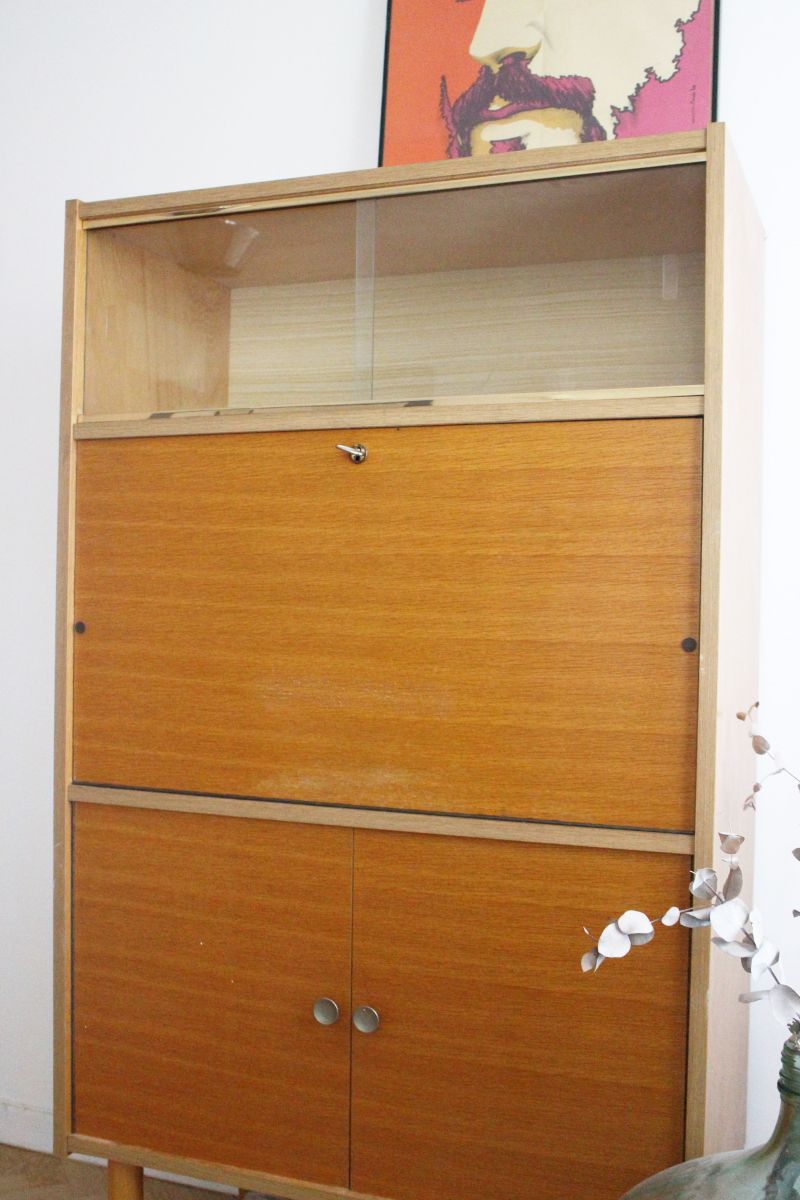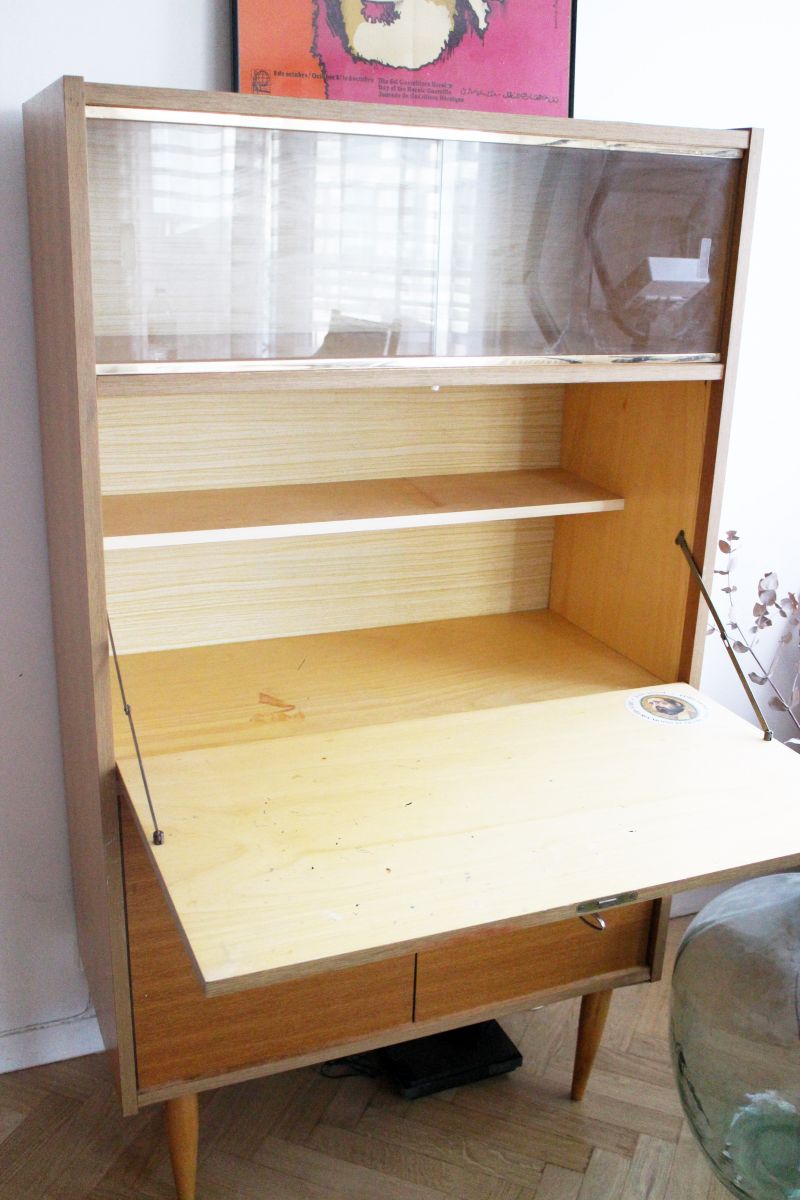 Secrétaire bureau vintage aux pieds compas des années 60.