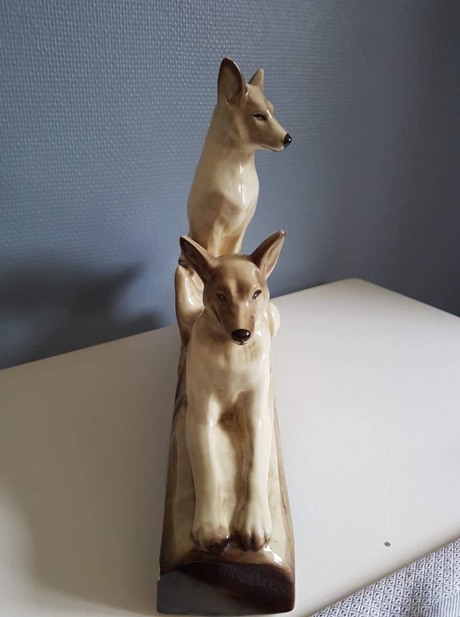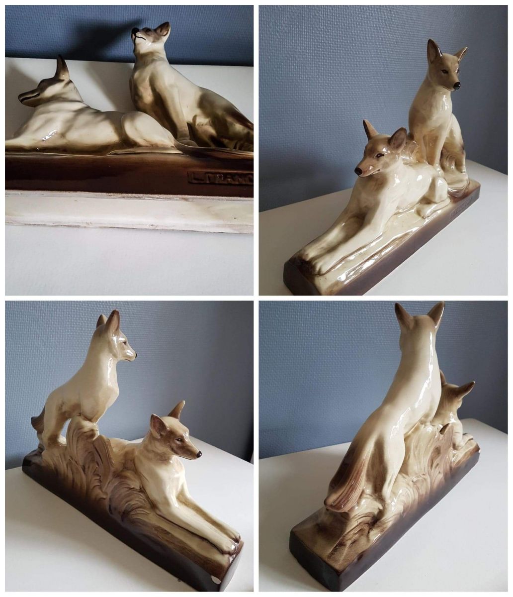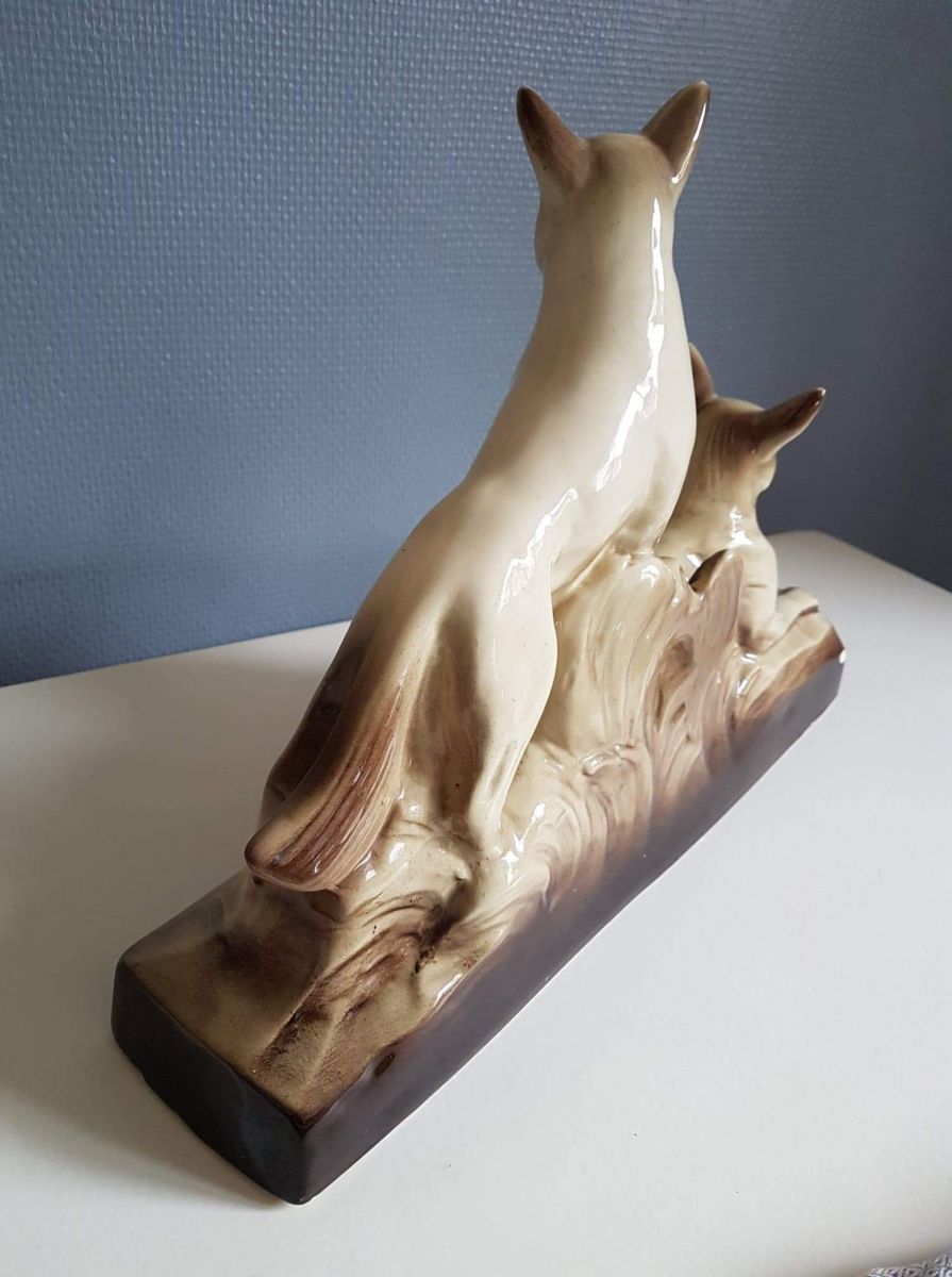 statue animalière ancienne en céramique du début du XXe siècle signée L François Ste Radegonde