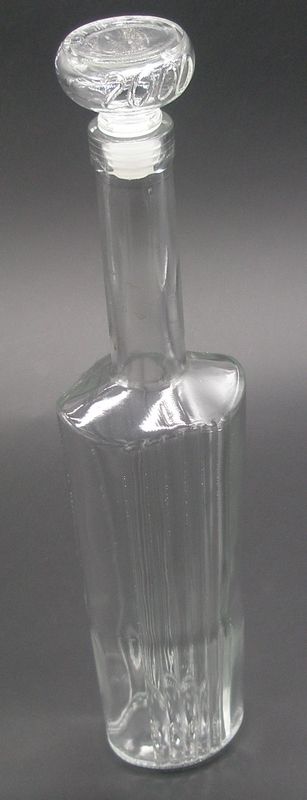 Carafe en verre spéciale année 2000, avec un bouchon en verre terminé par un embout plastique hermétique. Inscription "2000" sur le bouchon.