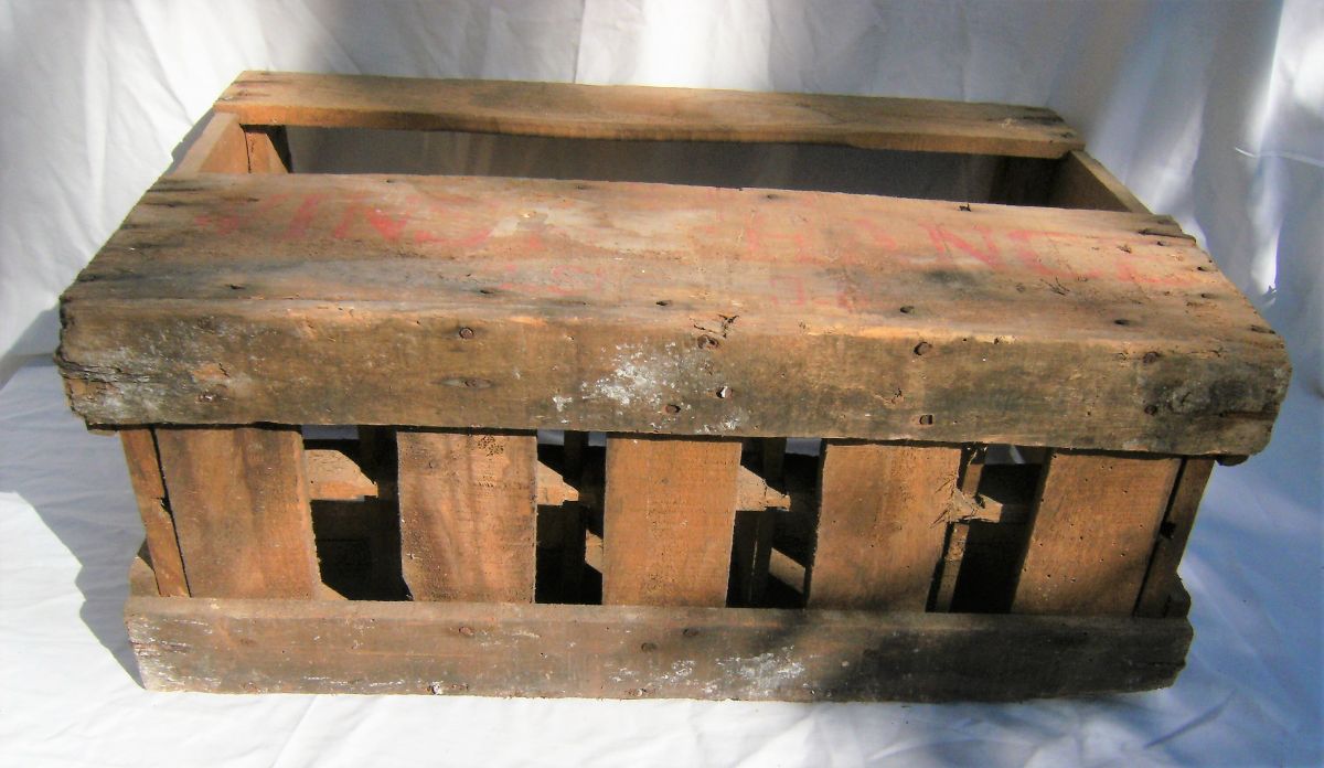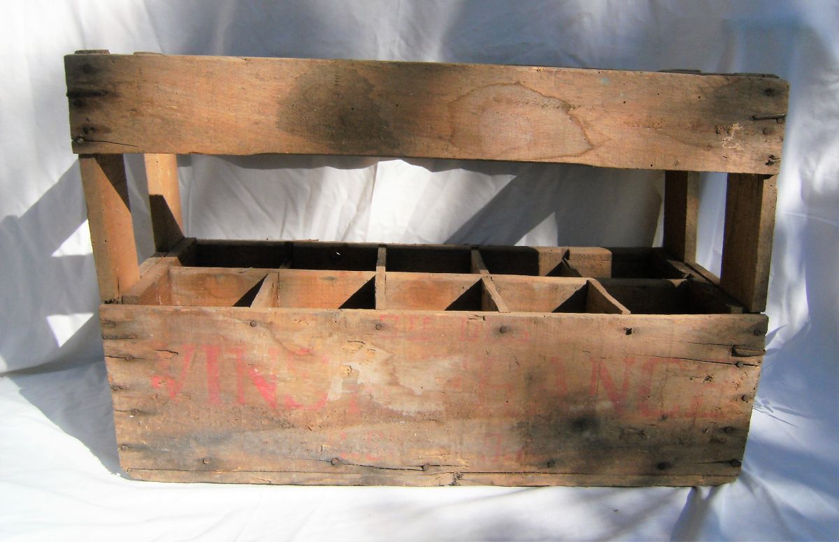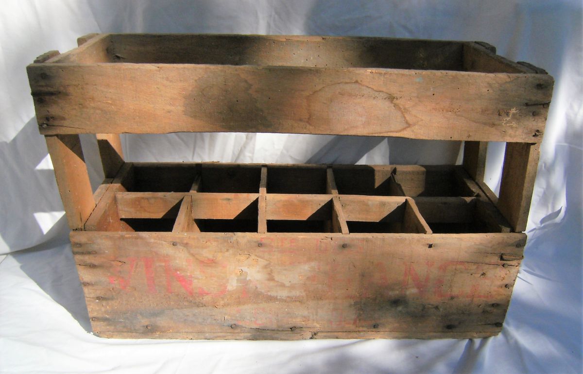 Casier bouteilles limonade,spiritueux ,etc en bois . Vintage