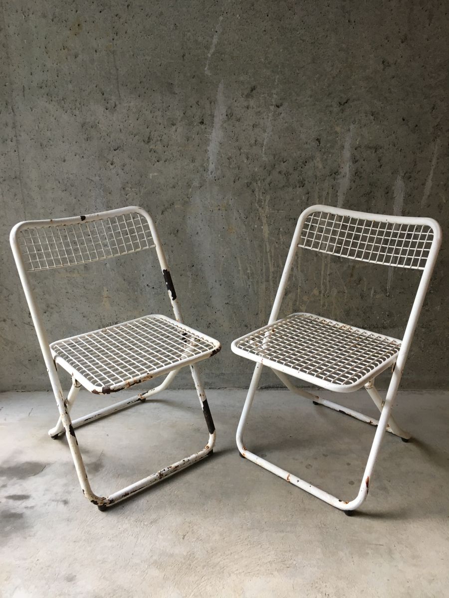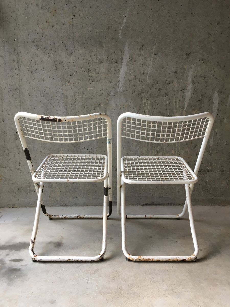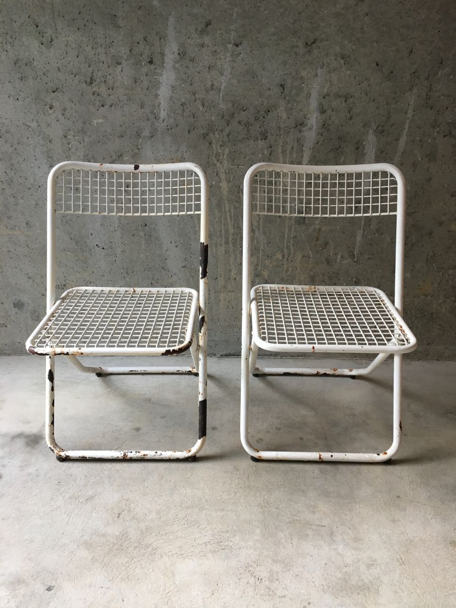 2 chaises métalliques pliantes Federico Giner, en l'état.