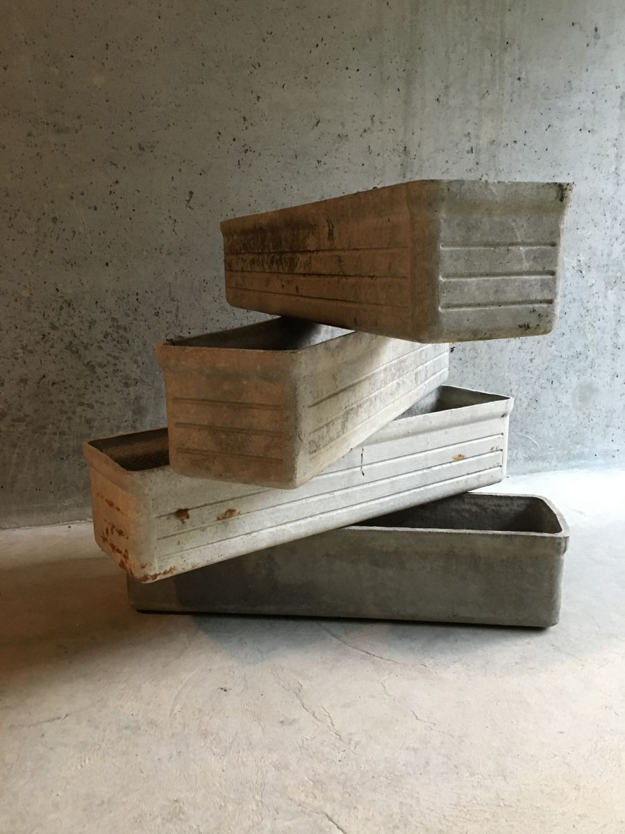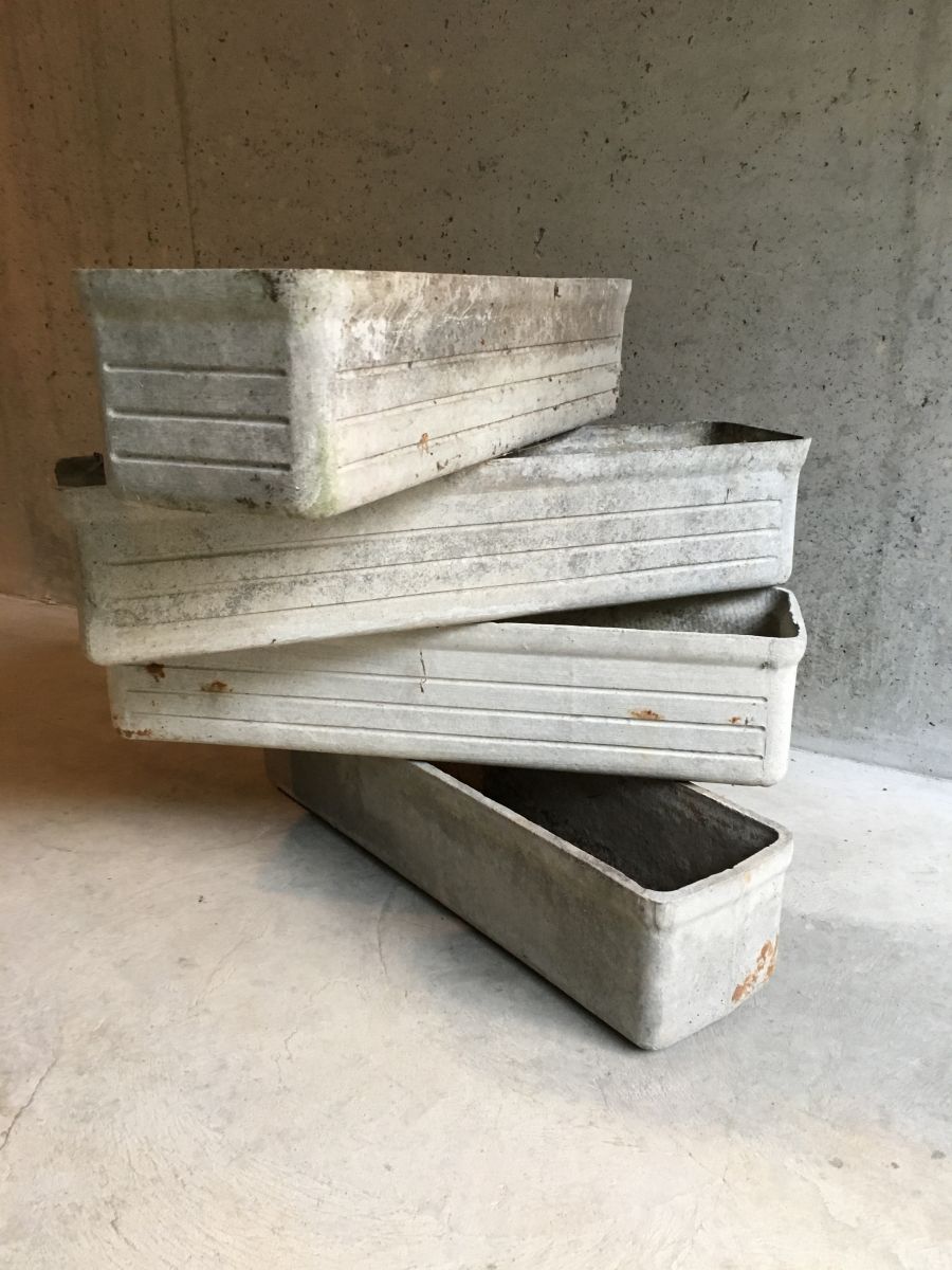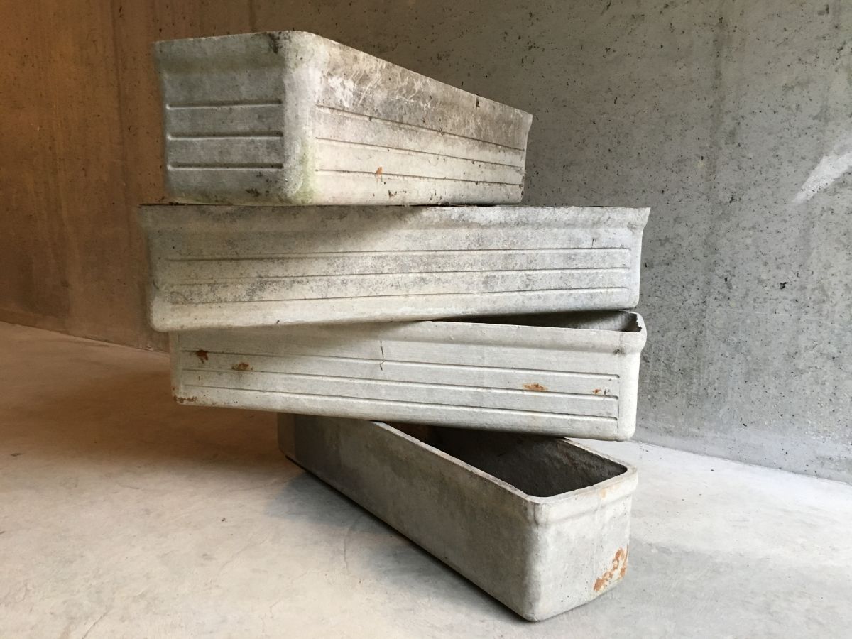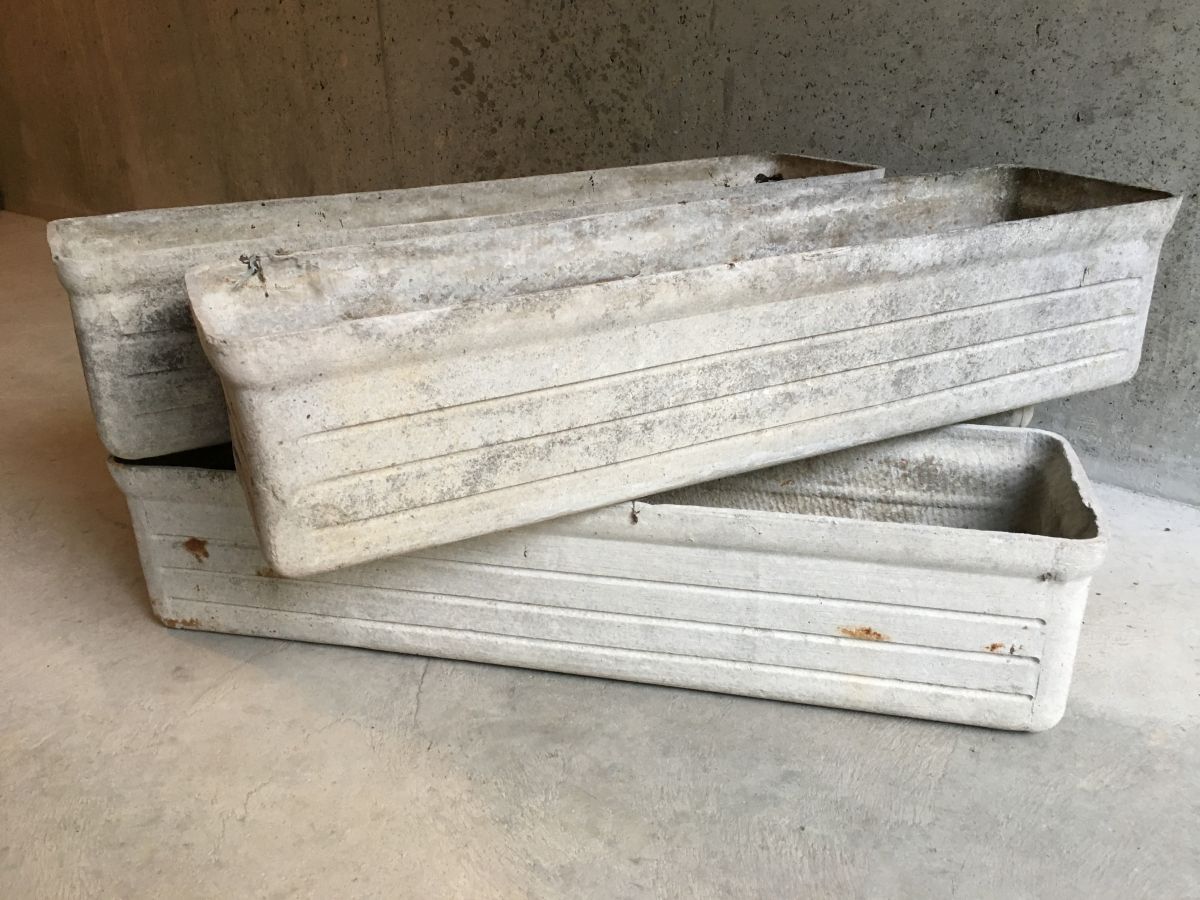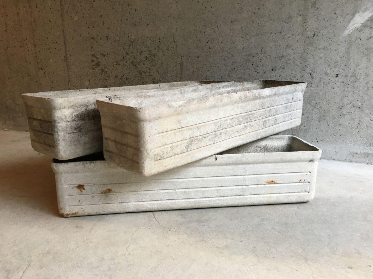 Lot de 4 jardinières Eternit en fibrociment, 3 striées et 1 lisse. Bon état, pas de fissure.