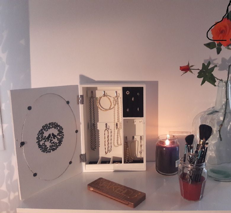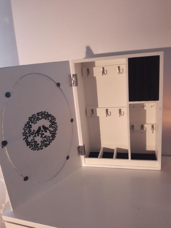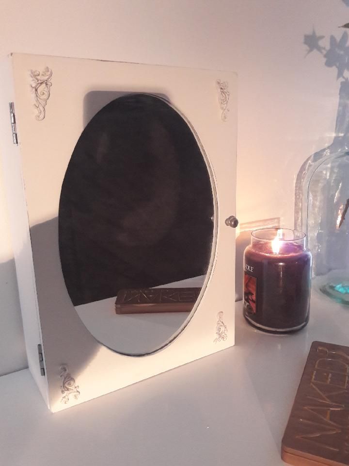 Jolie boîte à bijoux avec miroir. Rénovée et légèrement vieillie.
