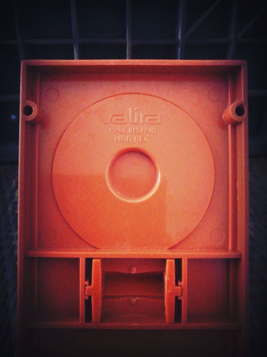 En verre moulé épais et plastique orange très représentatif du design seventy.